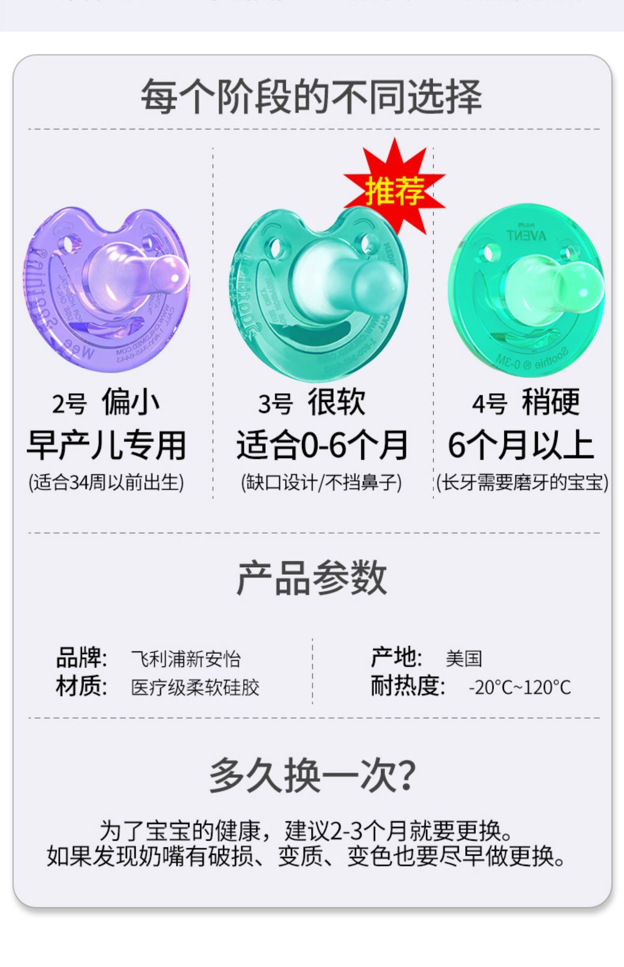 商品名称:台湾soothie安抚奶嘴全硅胶超软婴儿安睡型飞利浦3号奶嘴