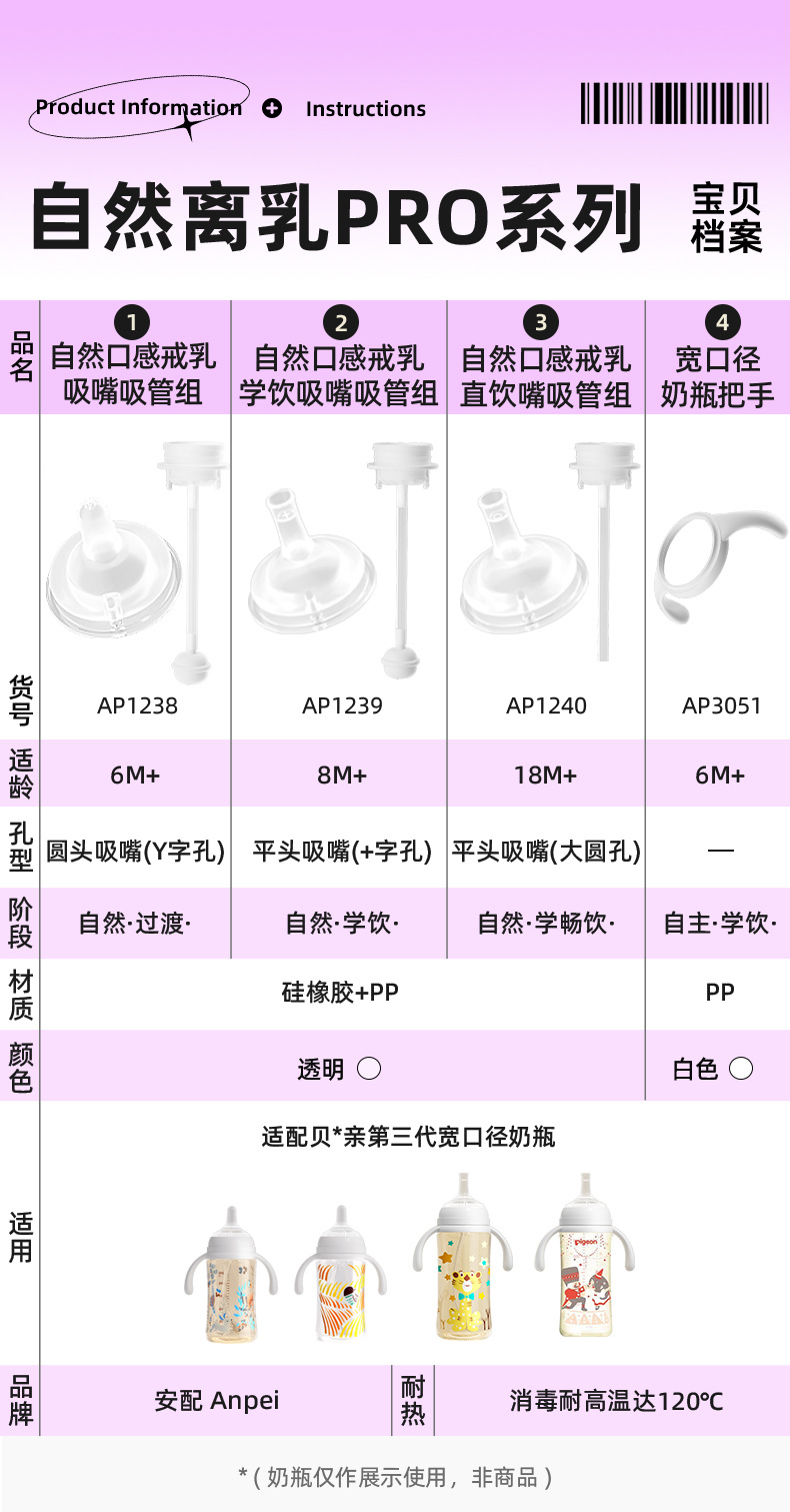 商品名称:安配适配贝亲奶瓶配件贝亲自然离乳奶嘴吸嘴重力球吸管组手柄把手