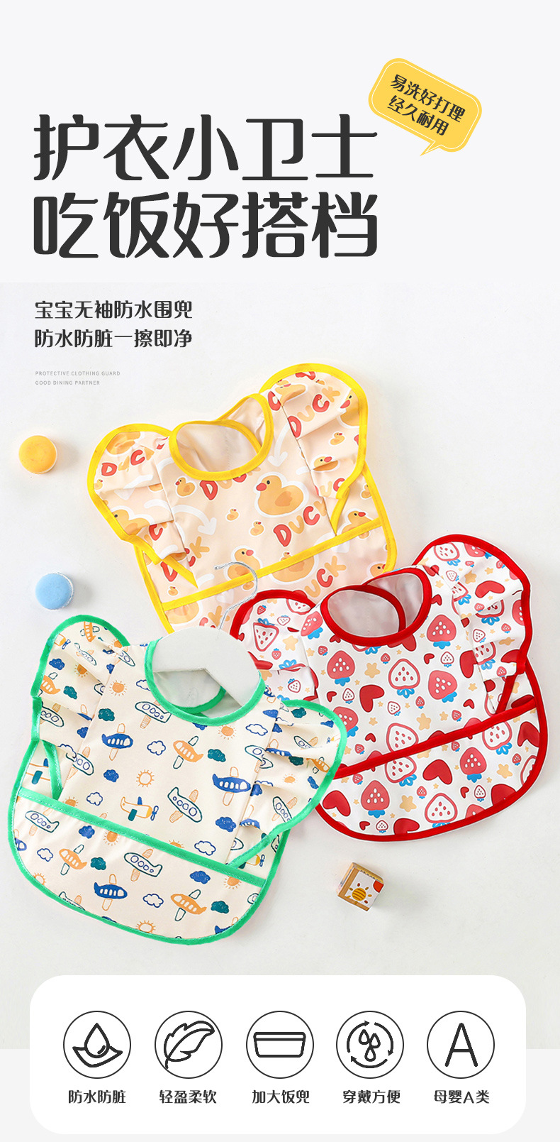 商品名称:宝宝吃饭围兜防水防脏薄款儿童辅食罩衣围裙男女婴儿无袖饭兜护衣