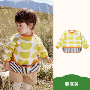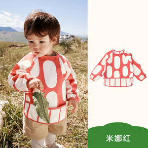 KK树宝宝吃饭围兜婴儿辅食罩衣防水饭兜幼儿园反穿衣一体式防脏污