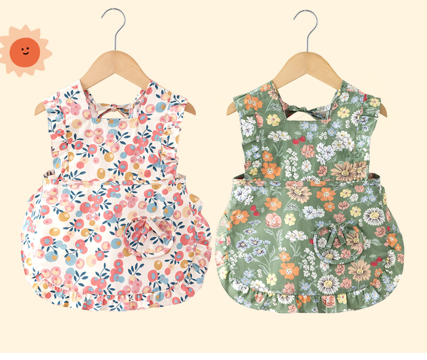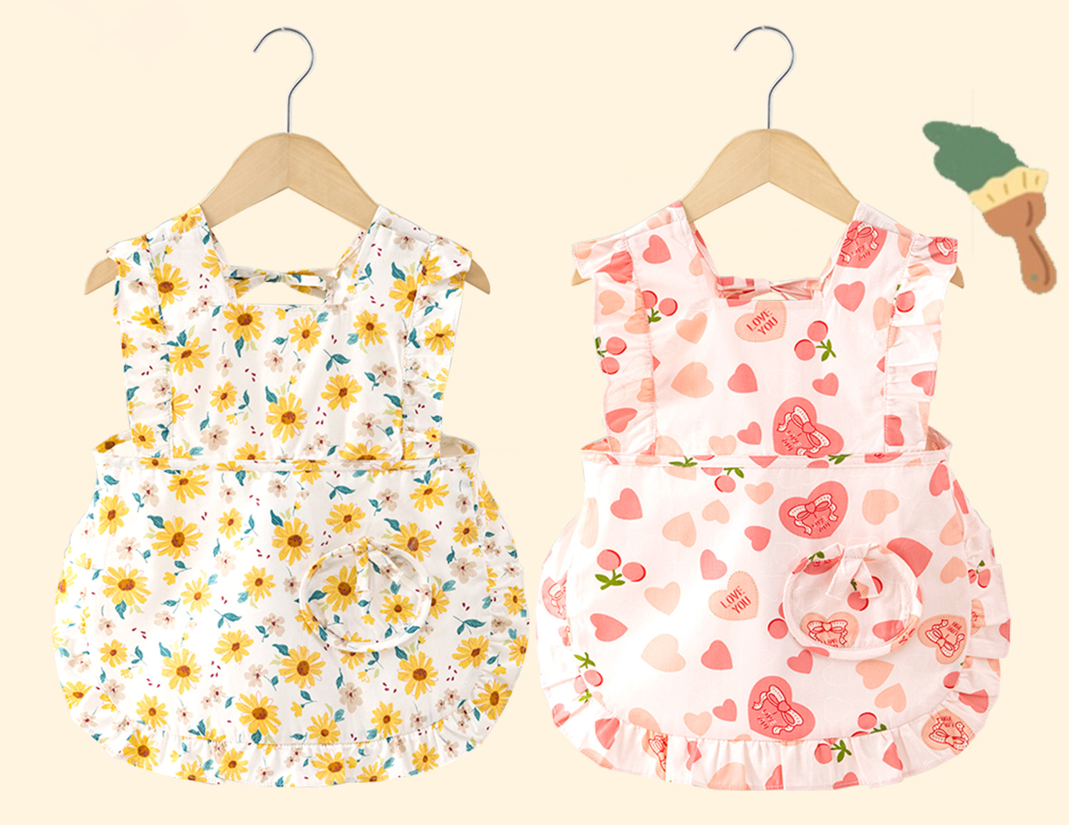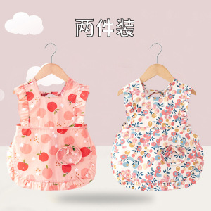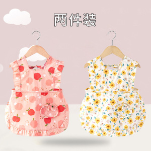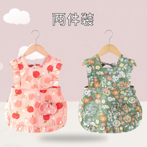 夏季罩衣公主宝宝吃饭围兜防水防脏污无袖儿童围裙婴儿薄款反穿衣