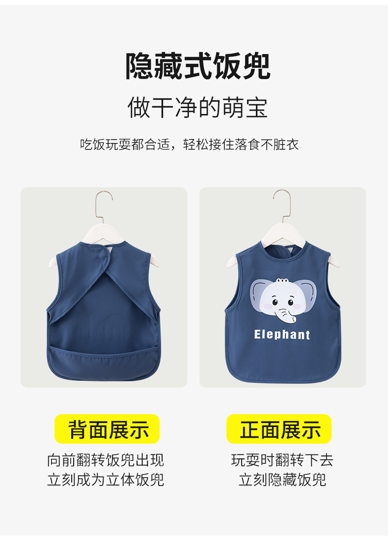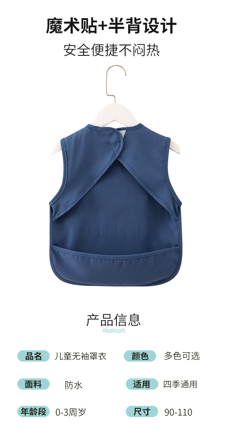 商品名称:纯色口水巾宝宝罩衣儿童吃饭围兜防水防脏夏季薄款男女无袖