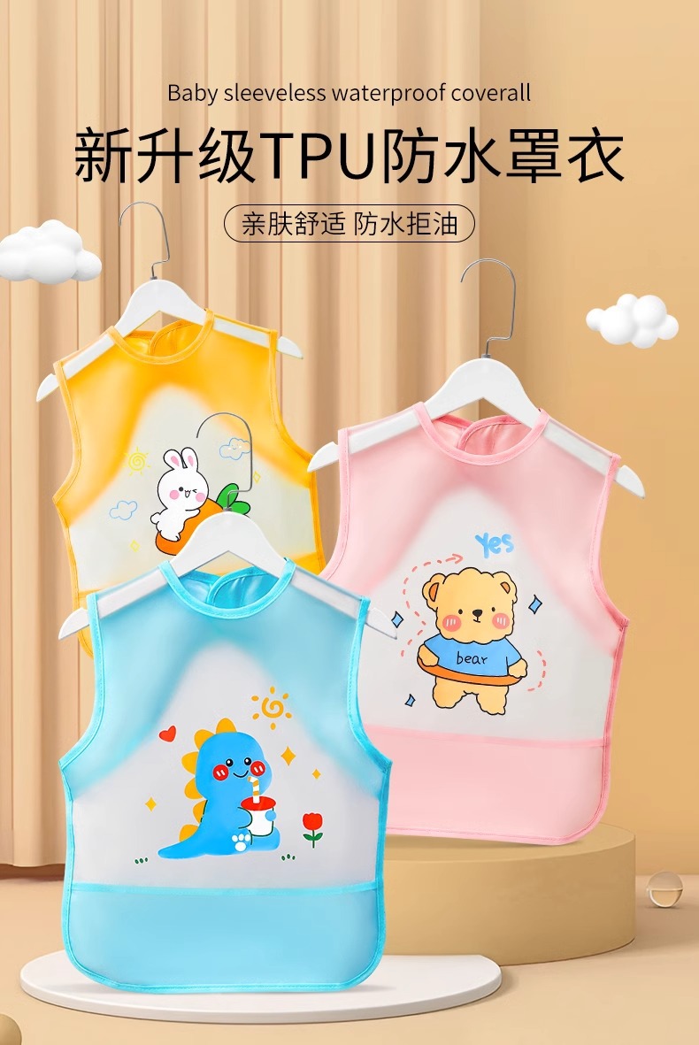 宝宝吃饭罩衣围兜饭兜儿童防水防脏容易清洗方便罩衣婴儿辅食无袖