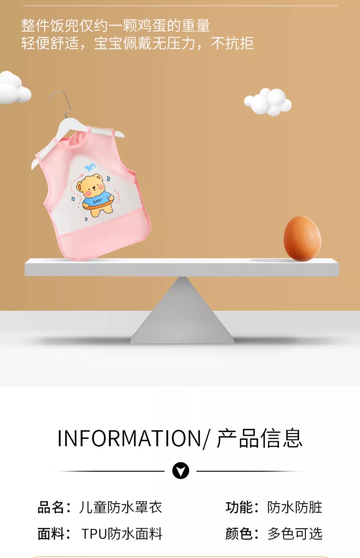 商品名称:宝宝吃饭罩衣围兜饭兜儿童防水防脏容易清洗方便罩衣婴儿辅食无袖