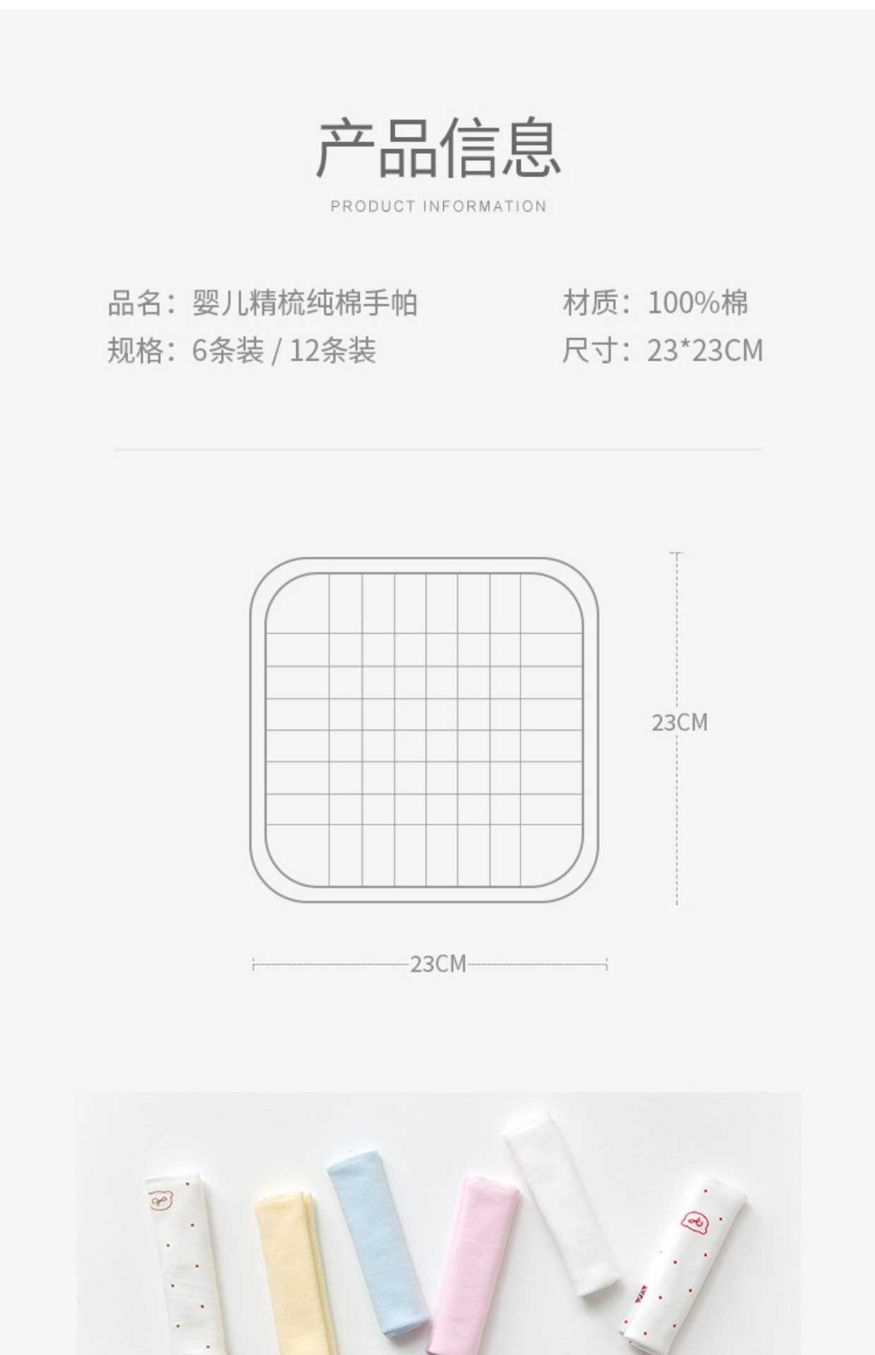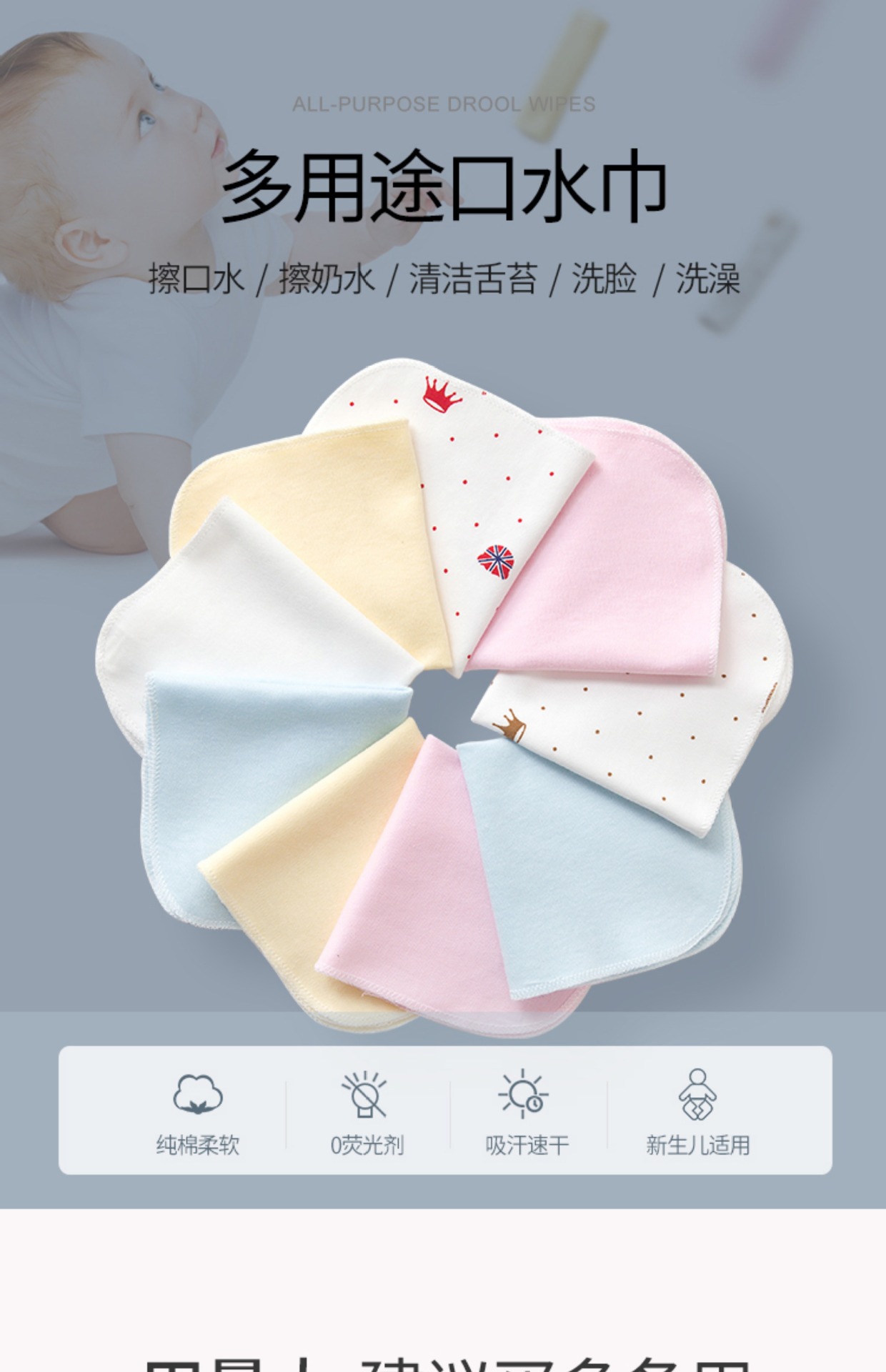 商品名称:6条装婴儿口水巾幼儿园手帕纯棉A类擦奶巾洗脸洗脚毛巾儿童方巾
