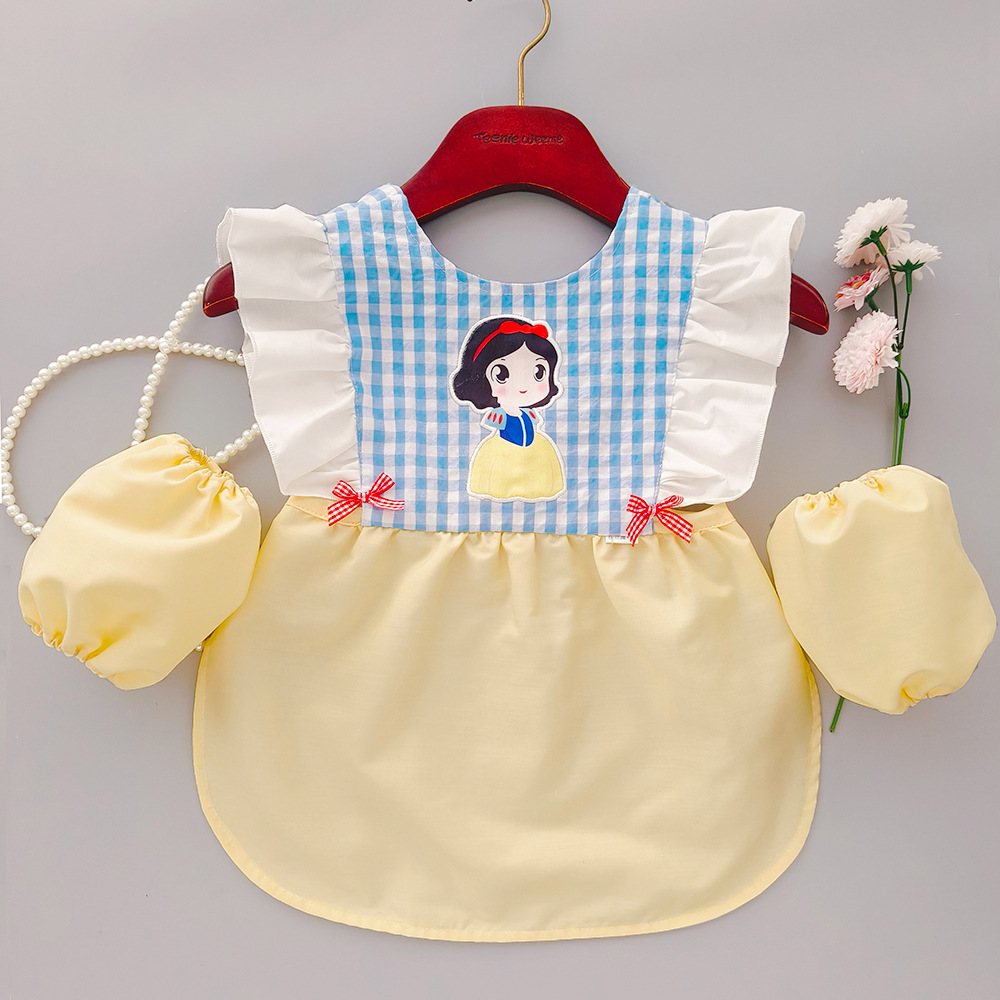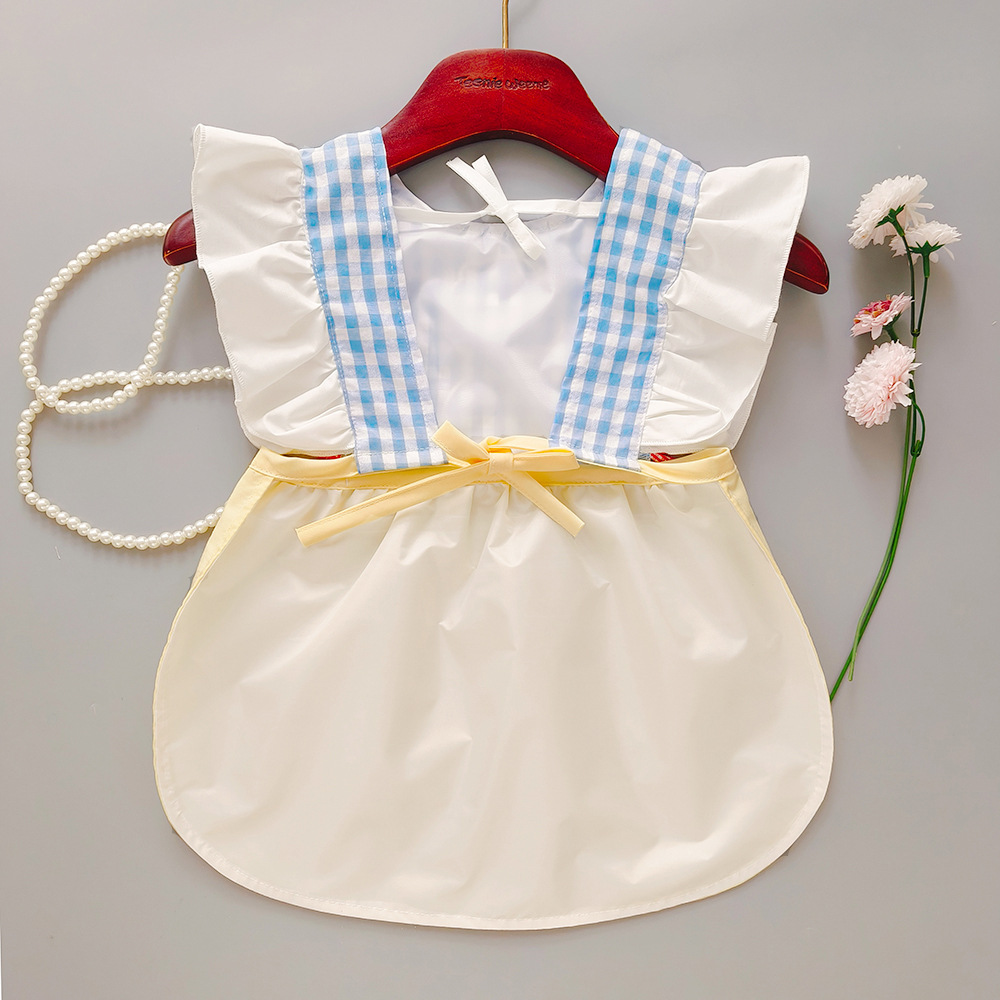 围裙后面是绑带式设计,穿脱方便,冬天棉衣厚重可以选大1-2码,只是长短的区别哈