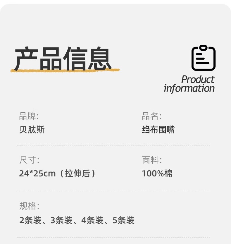 商品名称:贝肽斯婴儿口水巾宝宝夏天薄款围嘴a类纯棉防水新生幼儿口水围兜