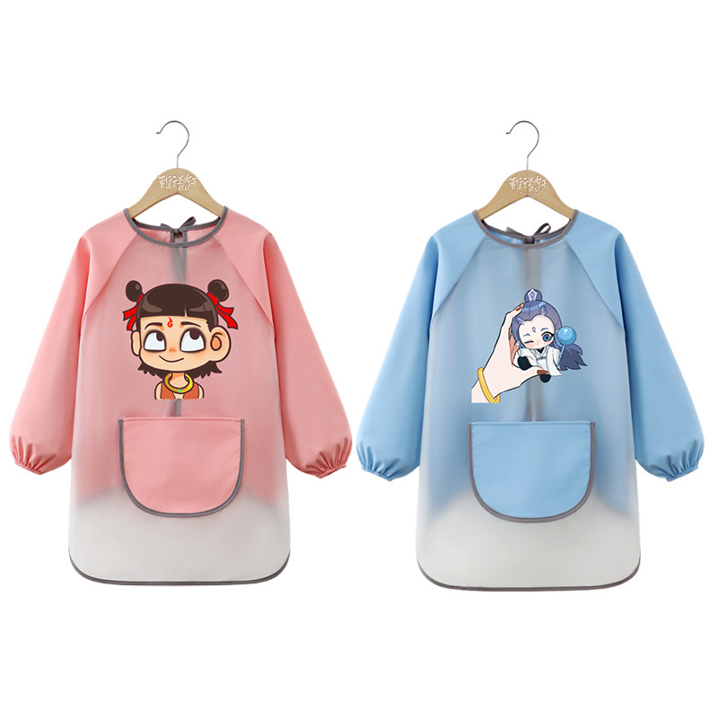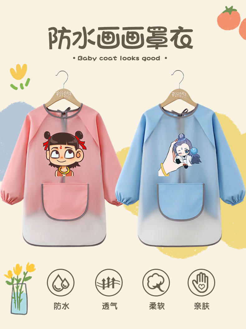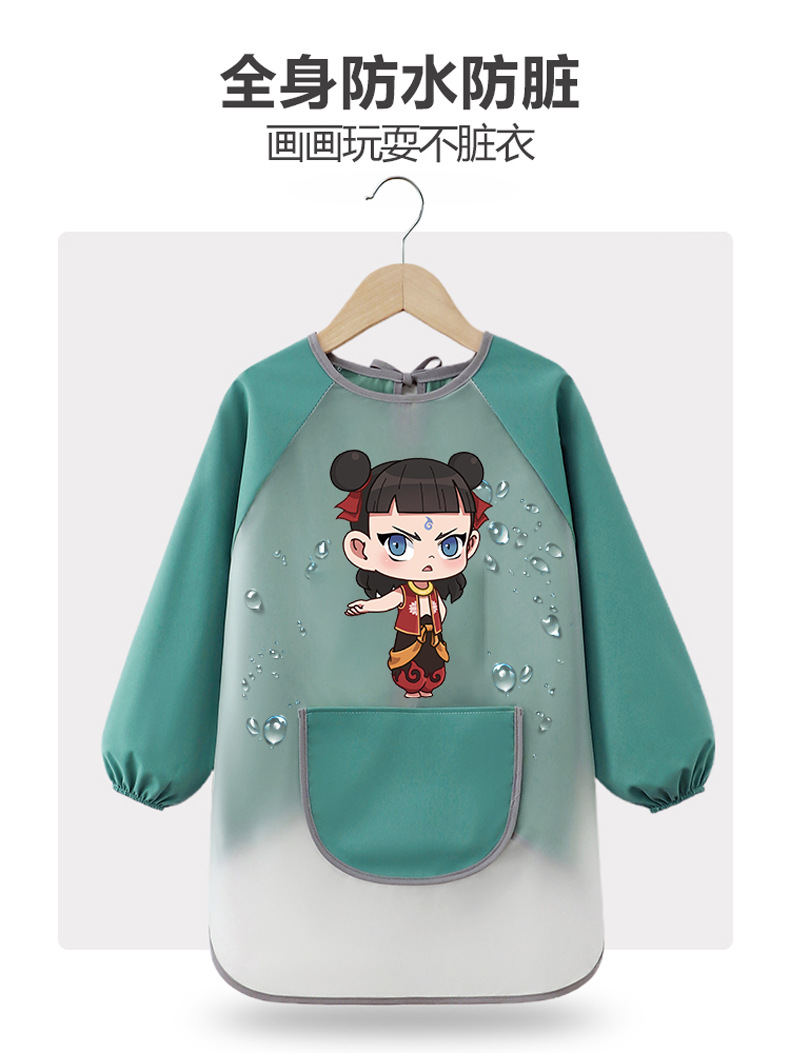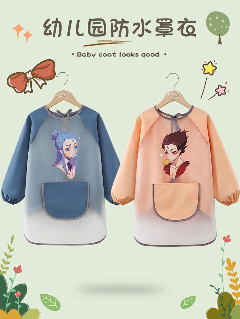 商品名称:儿童防水画画罩衣幼儿园绘画室美术免洗长袖宝宝围裙防脏哪吒敖丙