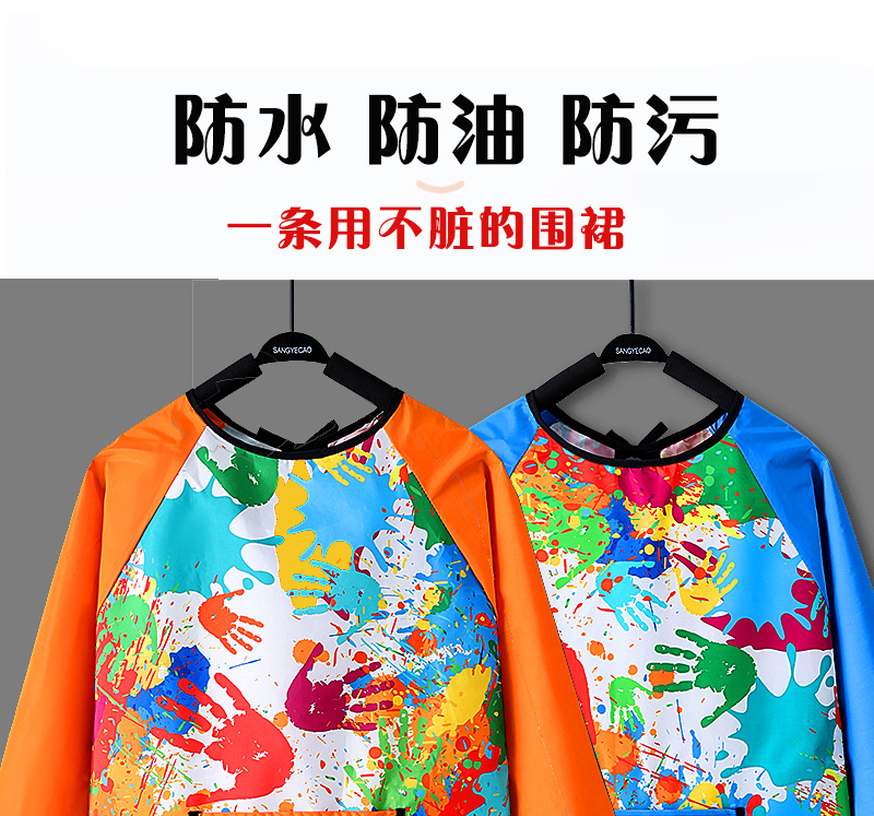 商品名称:儿童绘画围裙画画罩衣防水防脏女宝宝美术反穿护衣幼儿园吃饭围兜