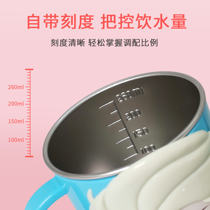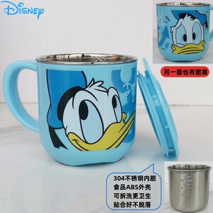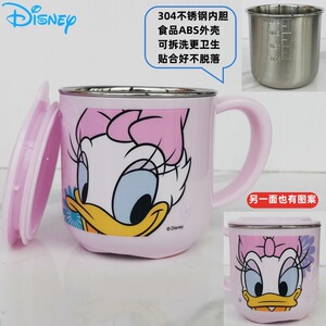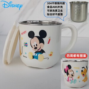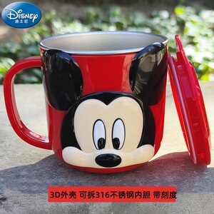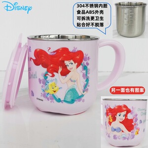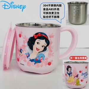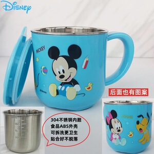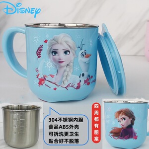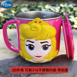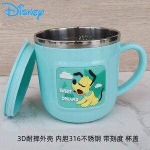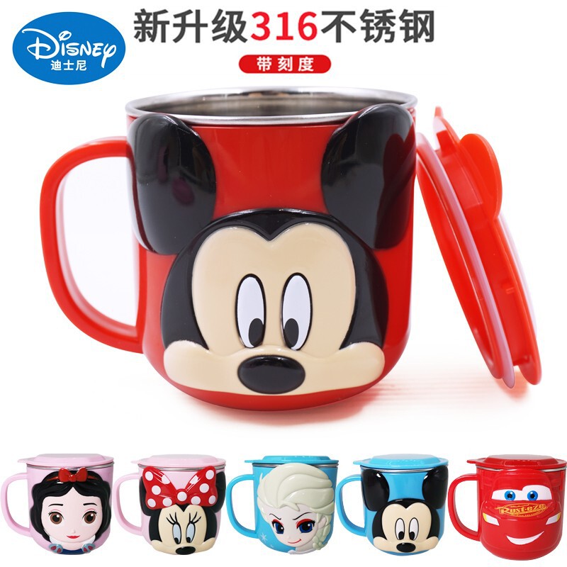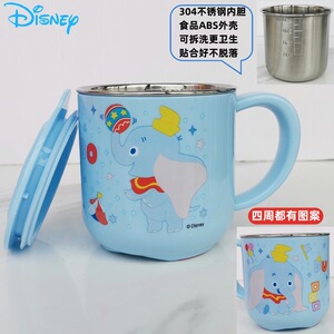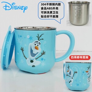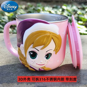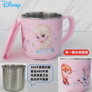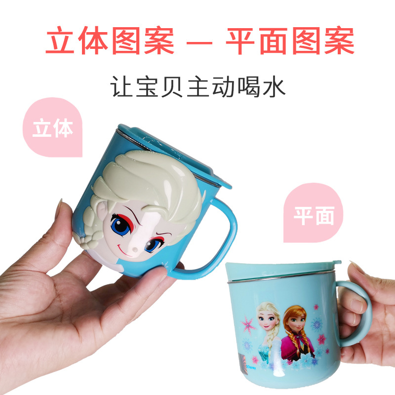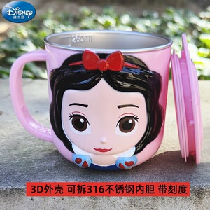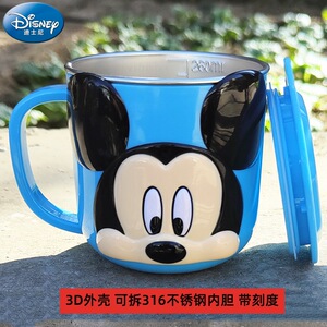 迪士尼儿童水杯家用防摔3D食品不锈钢口杯幼儿园水杯宝宝戒奶瓶