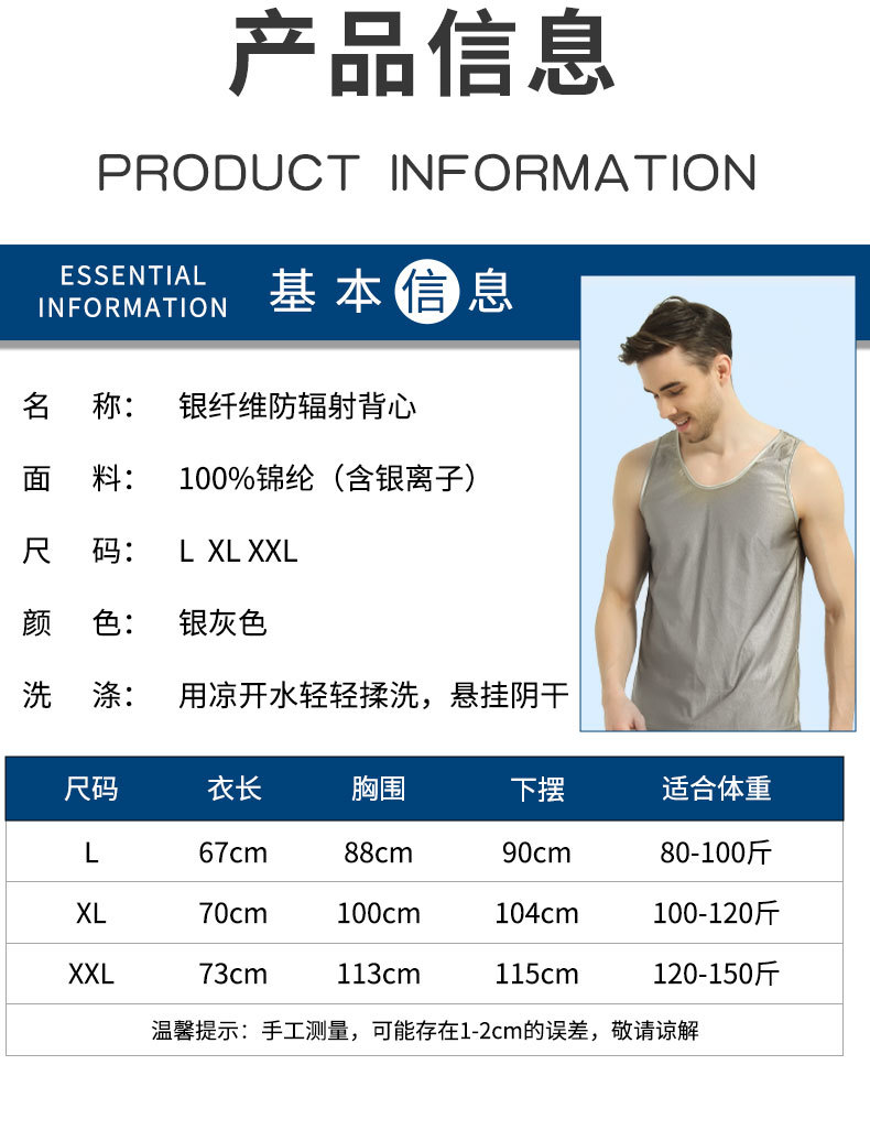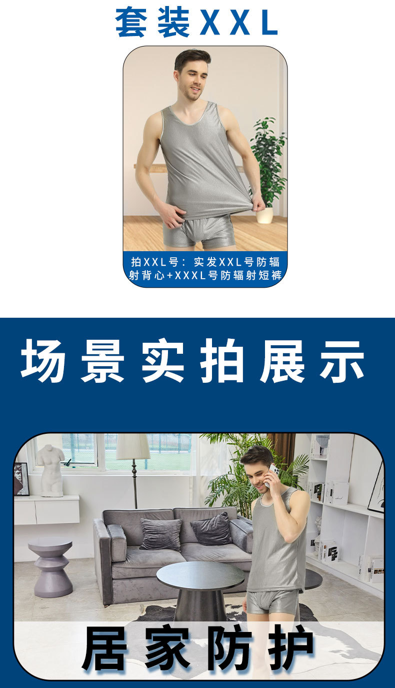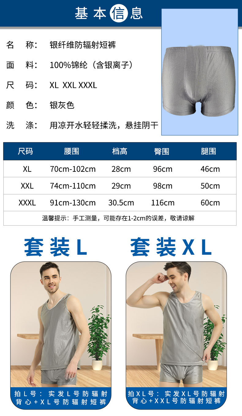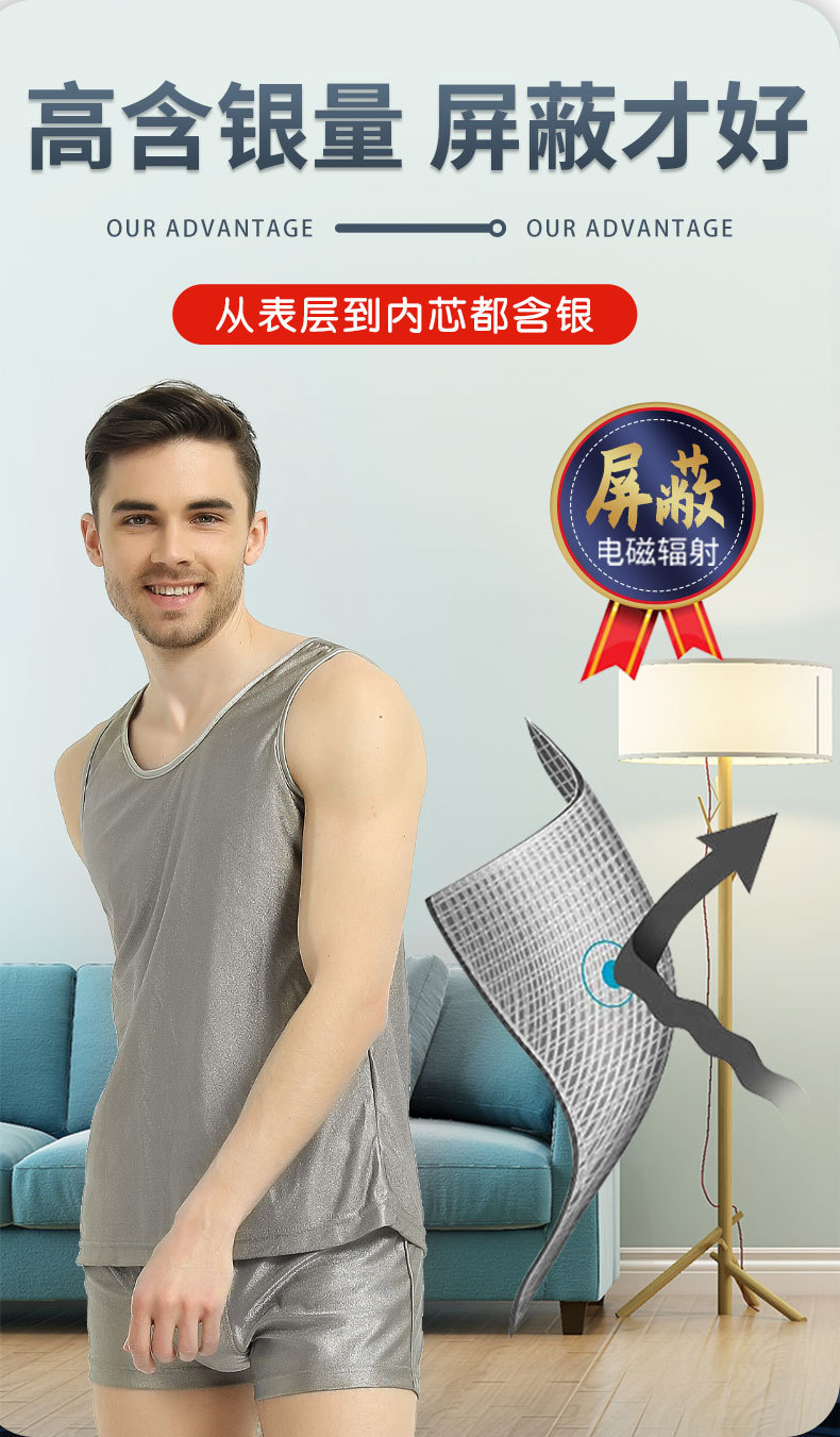 商品名称:银纤维防辐射服男女背心短裤屏蔽电磁波套装手机电脑机房5G干扰