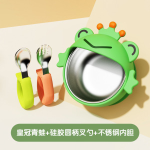 皇冠小青蛙(304配内胆)+绿粉/圆环训练勺叉套装