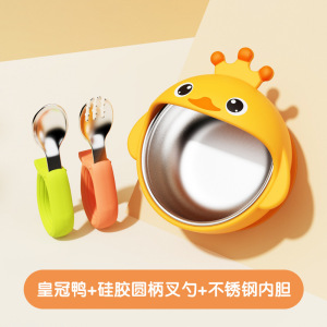 皇冠鸭(304配内胆)+绿粉/圆环训练勺叉套装