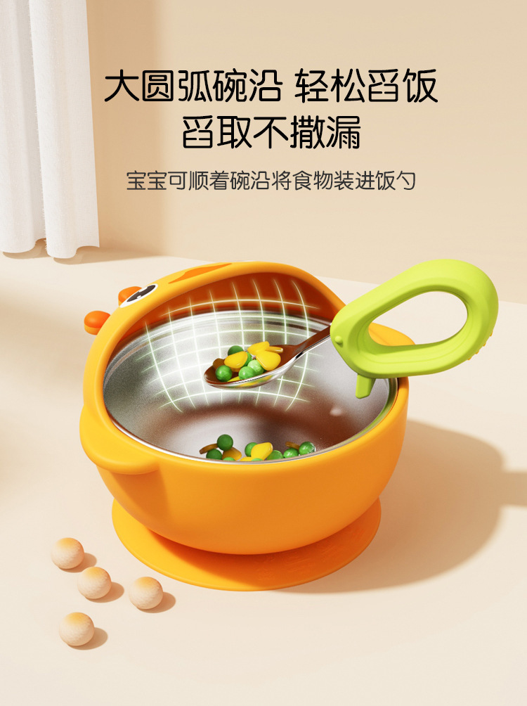 热销不锈钢儿童餐具宝宝吃饭吸盘碗食品级硅胶防打翻母婴用品