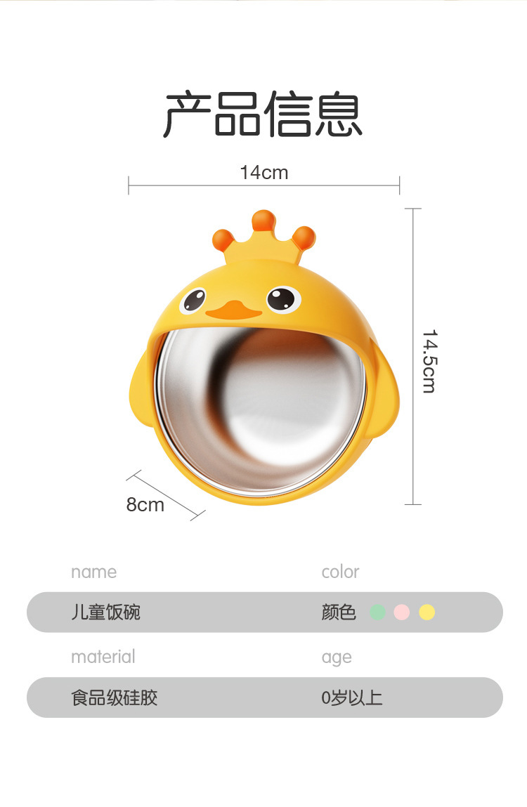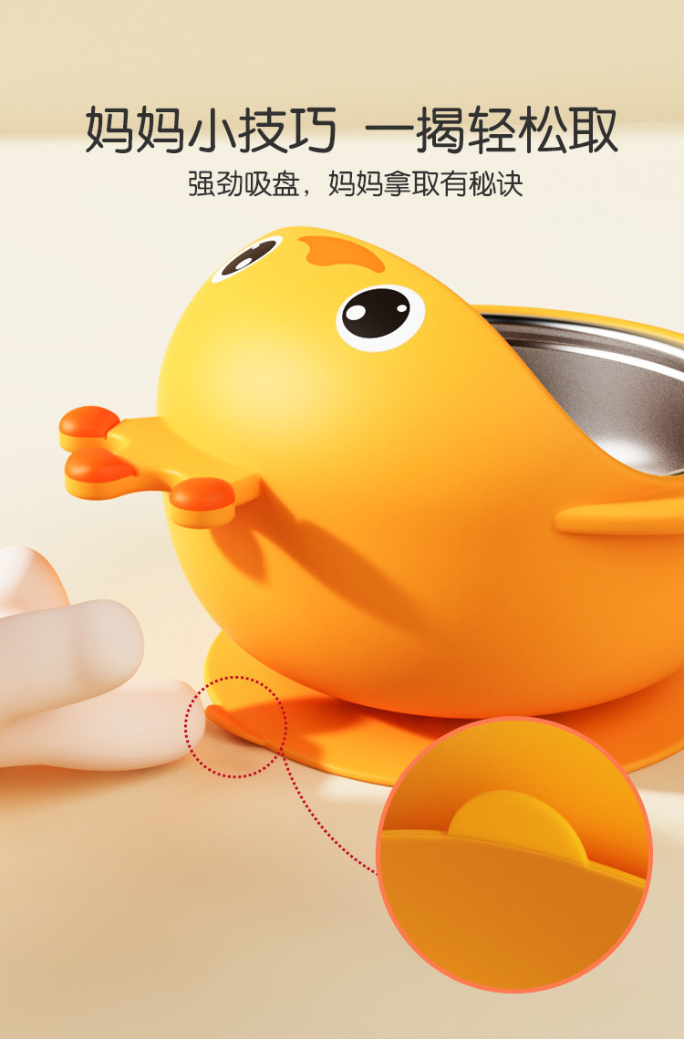 皇冠鸭吸盘碗-黄色(304内胆款)