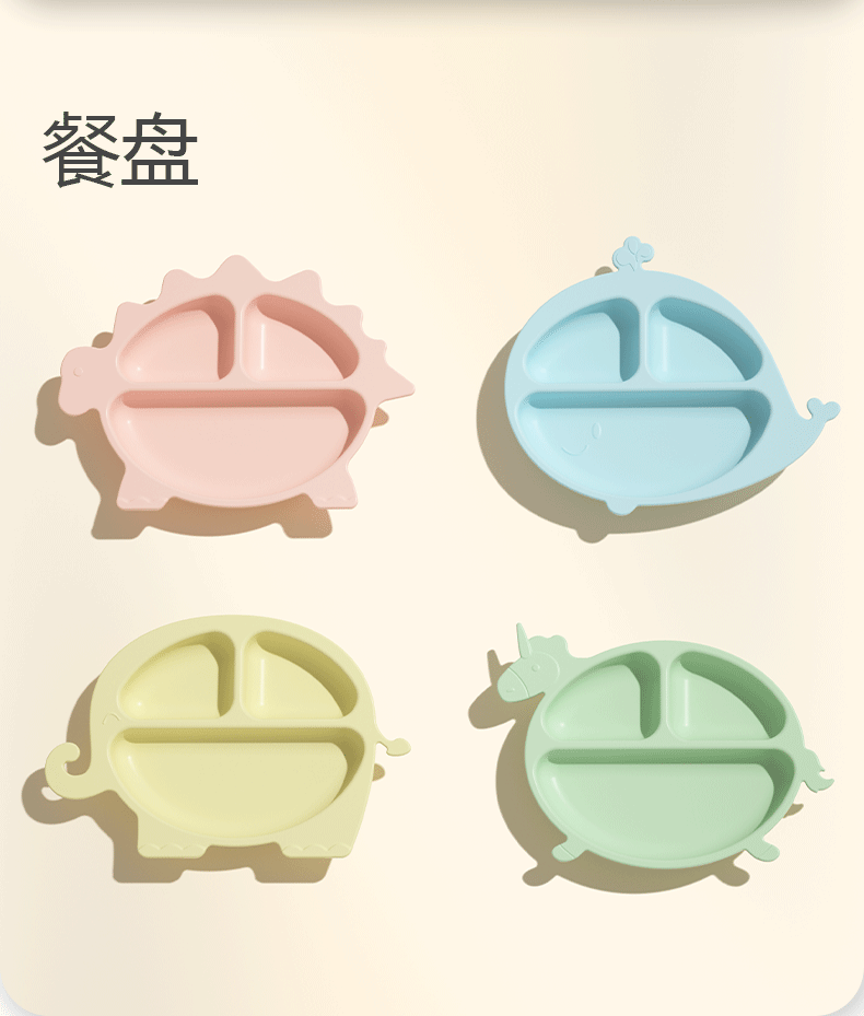 食品级儿童硅胶餐盘套装硅胶碗叉勺宝宝辅食碗喂养餐具六件套