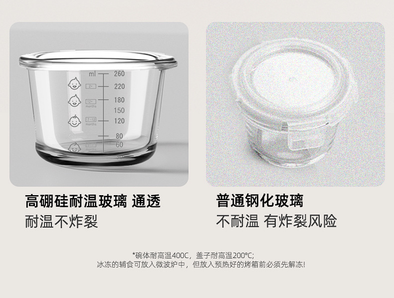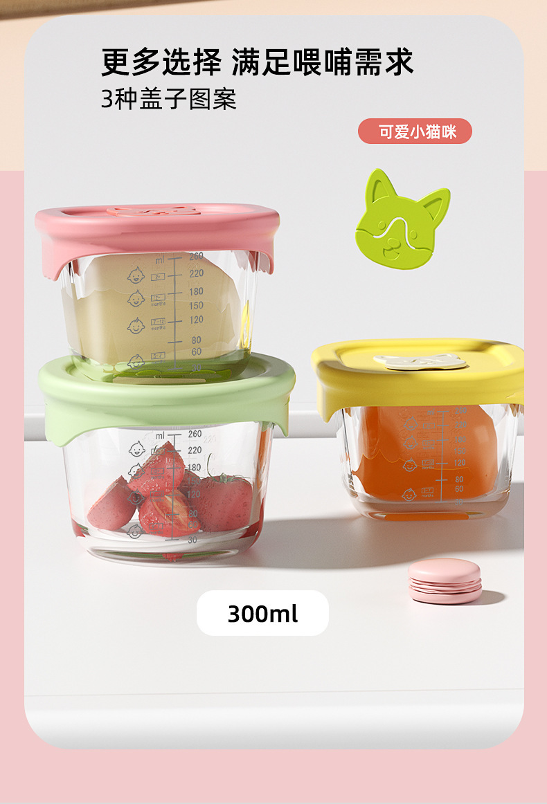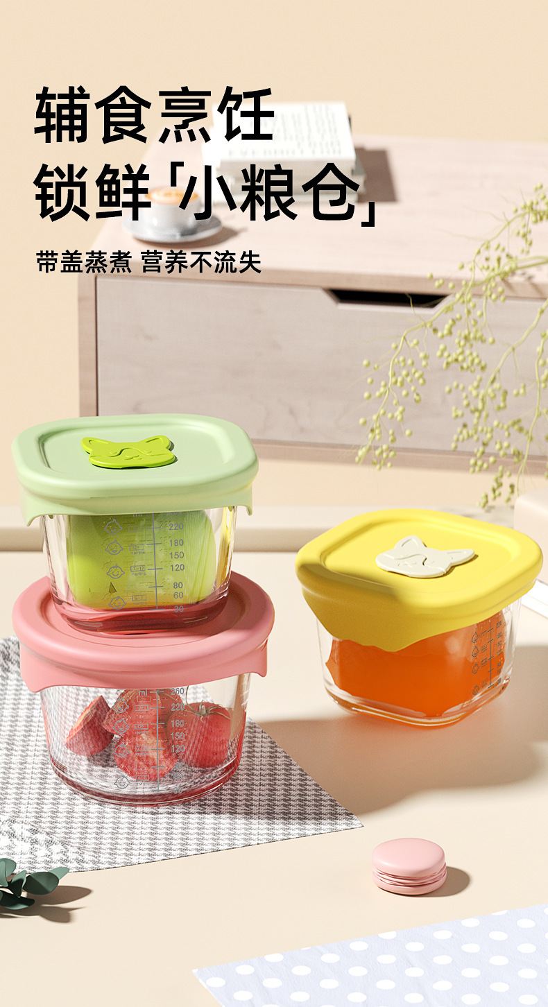 300ML辅食盒大容量玻璃可蒸煮蛋碗婴儿专辅食碗宝宝储存工具全套