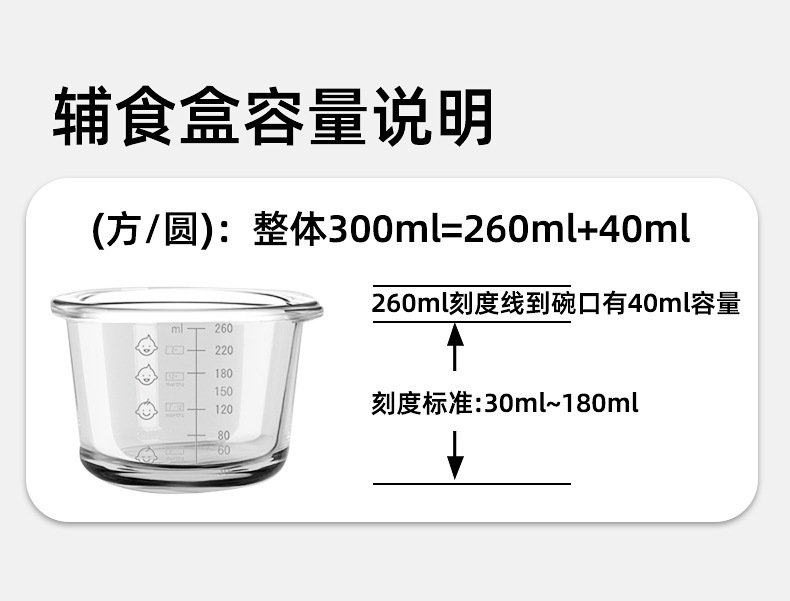 商品名称:300ML辅食盒大容量玻璃可蒸煮蛋碗婴儿专辅食碗宝宝储存工具全套