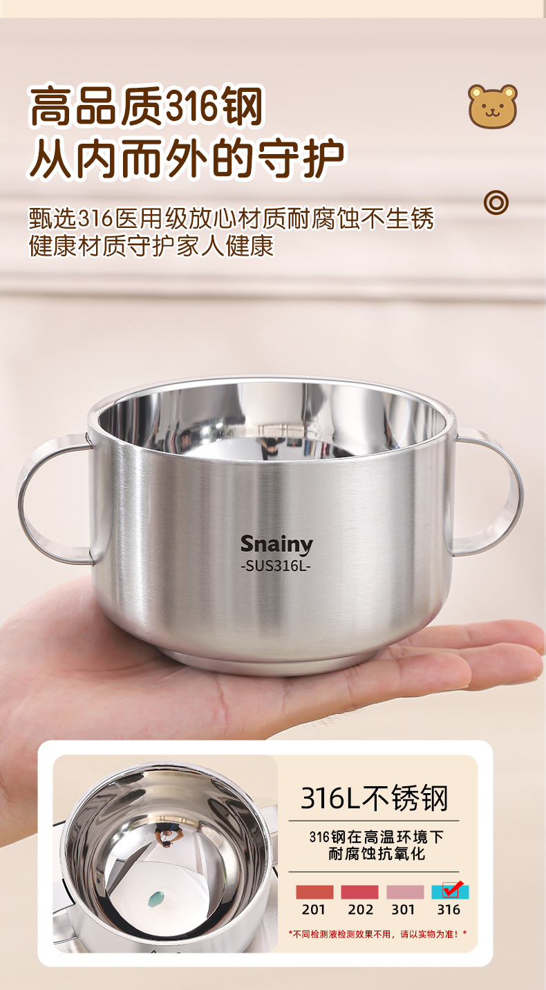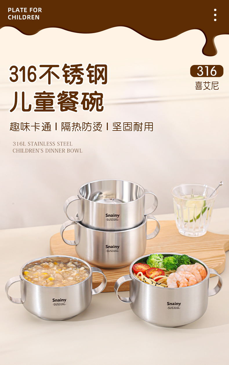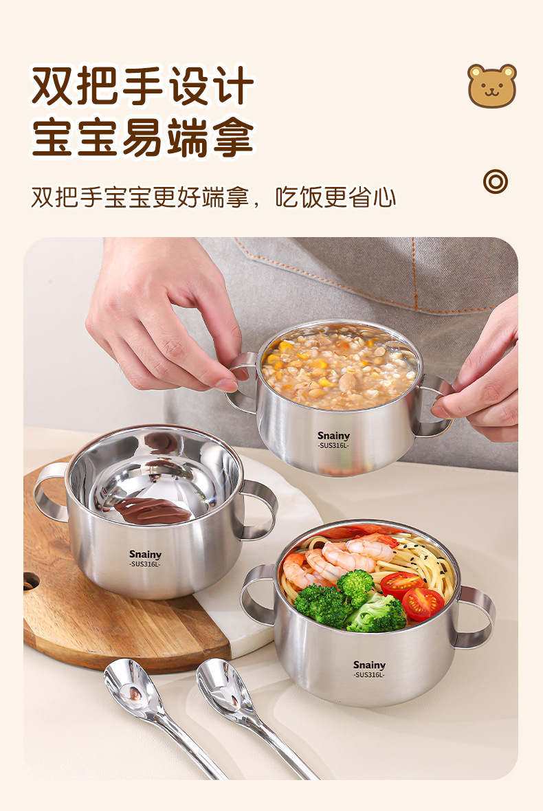 商品名称:316不锈钢儿童碗宝宝吃饭专用辅食碗食品级饭碗防摔防烫双耳汤碗