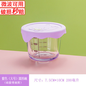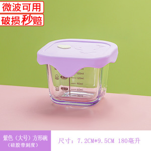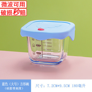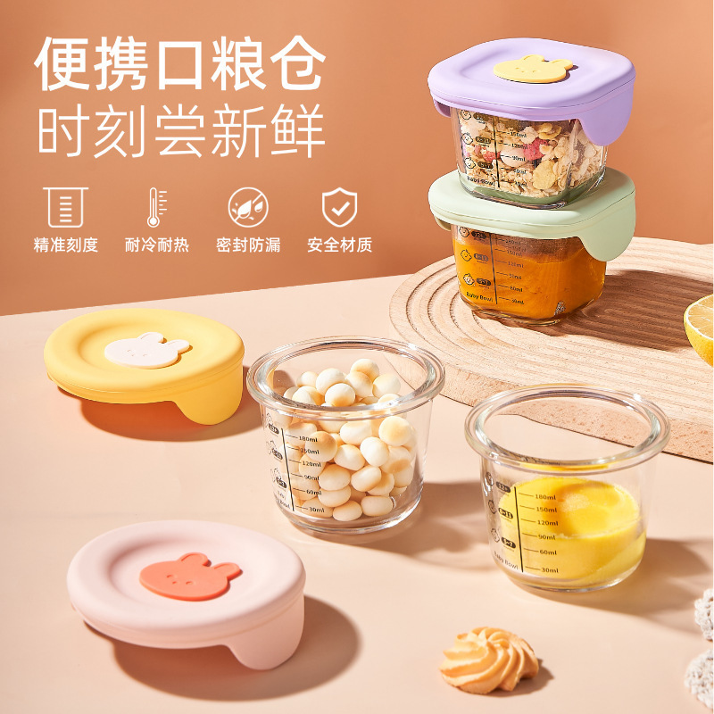 宝宝硅胶辅食碗玻璃保鲜盒蒸蛋刻度碗保鲜饭盒家用婴儿奶粉存储盒