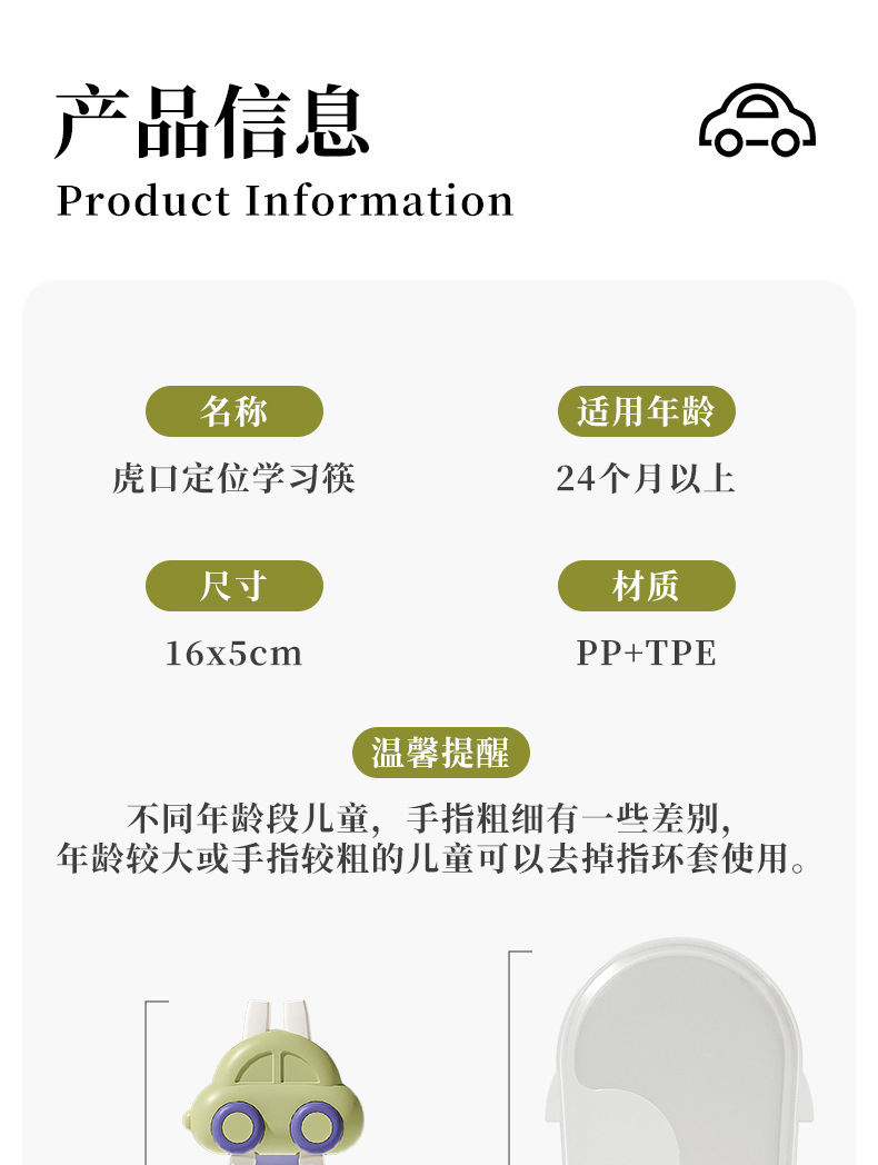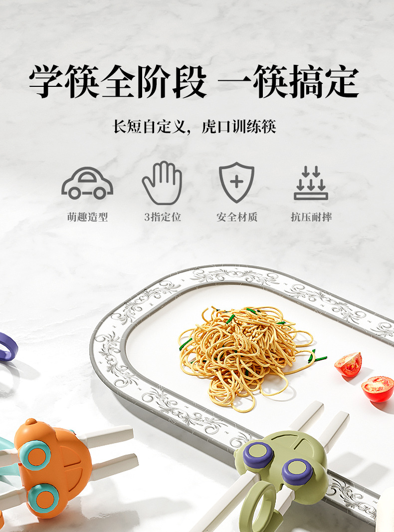 商品名称:儿童筷子虎口训练筷婴幼儿学习吃饭筷宝宝辅助练习专用餐具