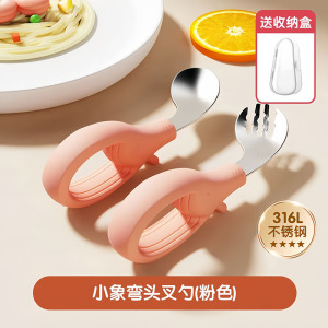316粉色小象单勺+收纳盒