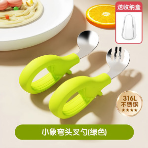316绿色小象单勺+收纳盒