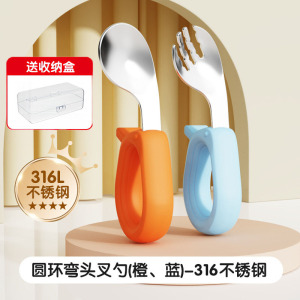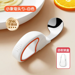 宝宝自主进食辅食勺儿童短柄训练勺一岁婴儿辅食勺子不锈钢弯头勺