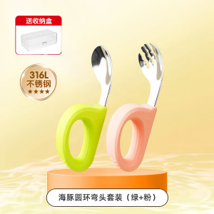 316海豚圆环单勺(绿)+收纳盒