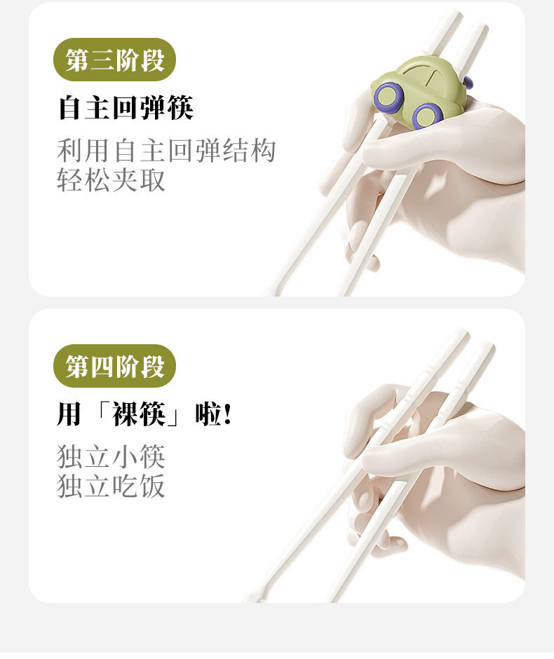 儿童筷子1-3岁防滑餐具宝宝移动卡通训练筷幼儿虎口筷练习筷子