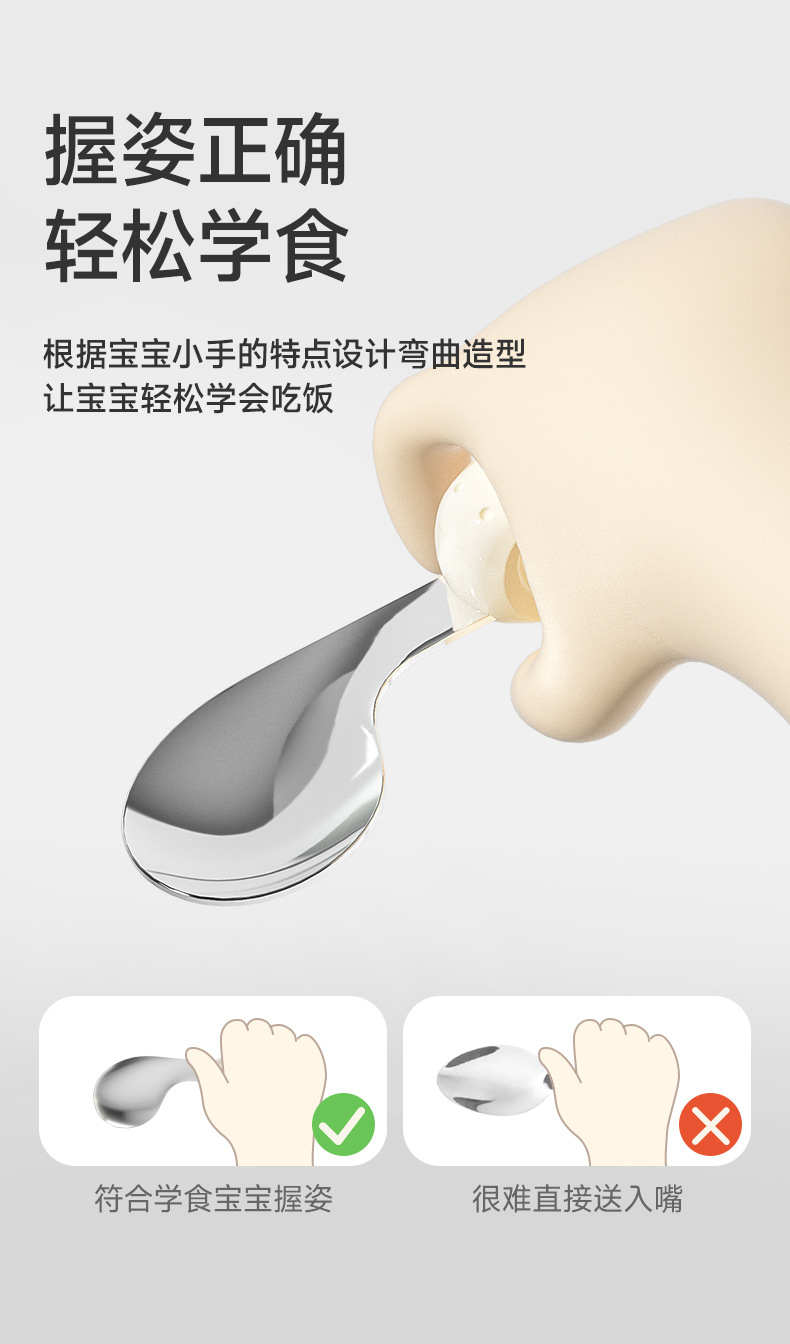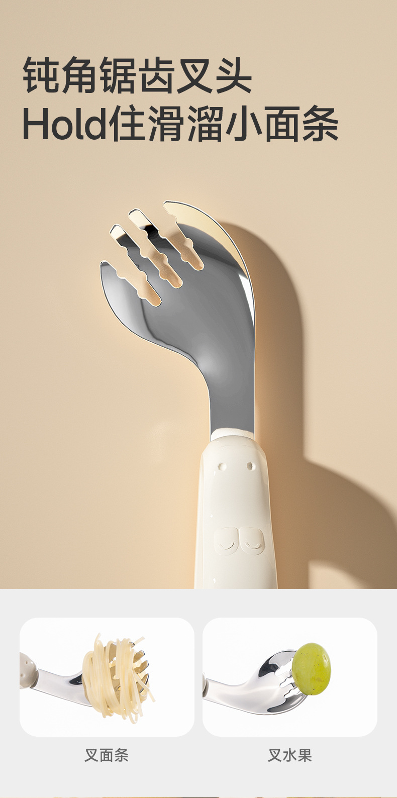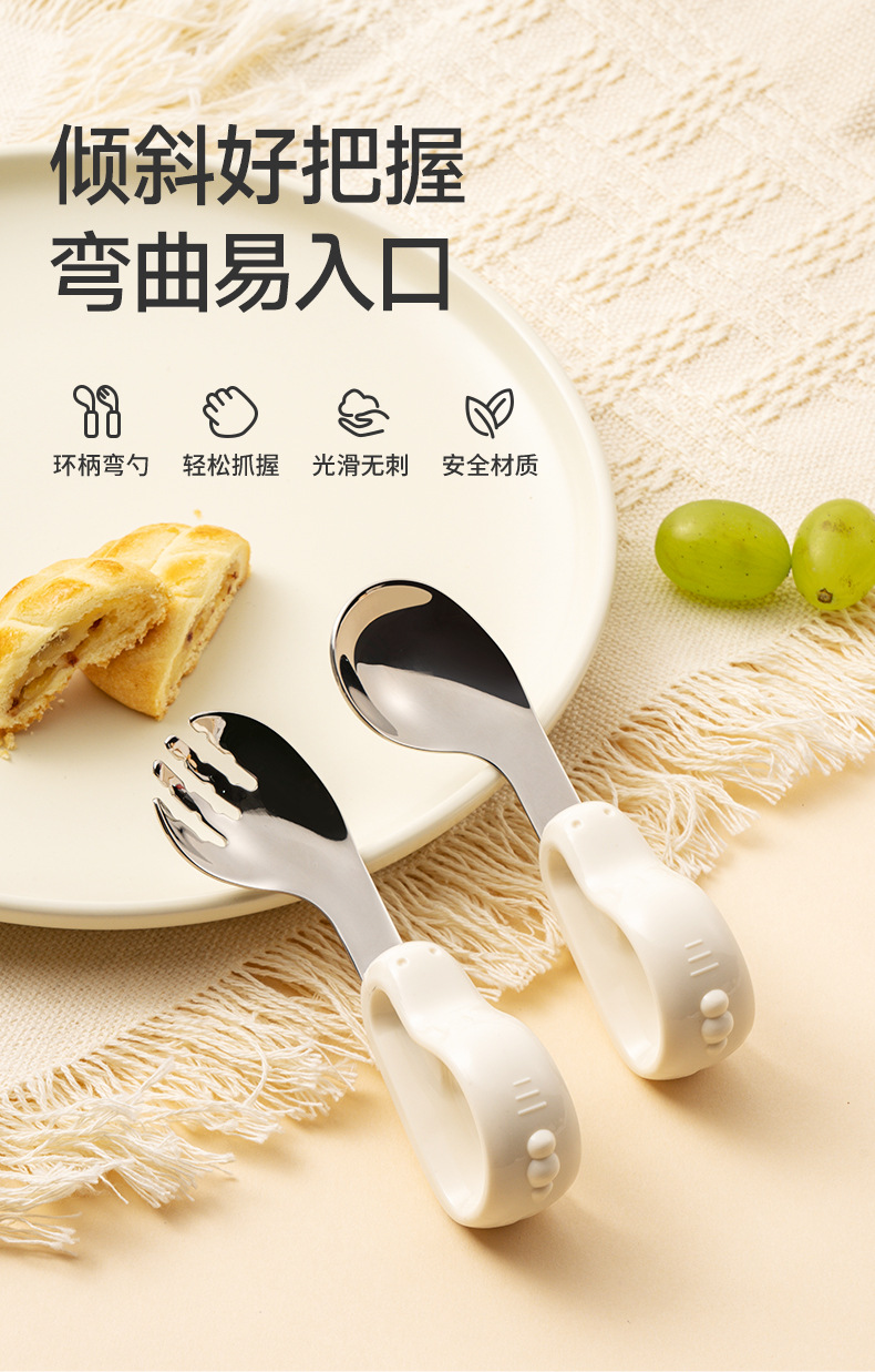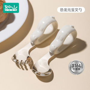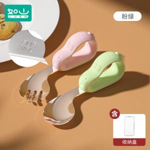 如山宝宝自主进食辅食勺子一岁婴儿学吃饭训练儿童不锈钢短柄叉勺