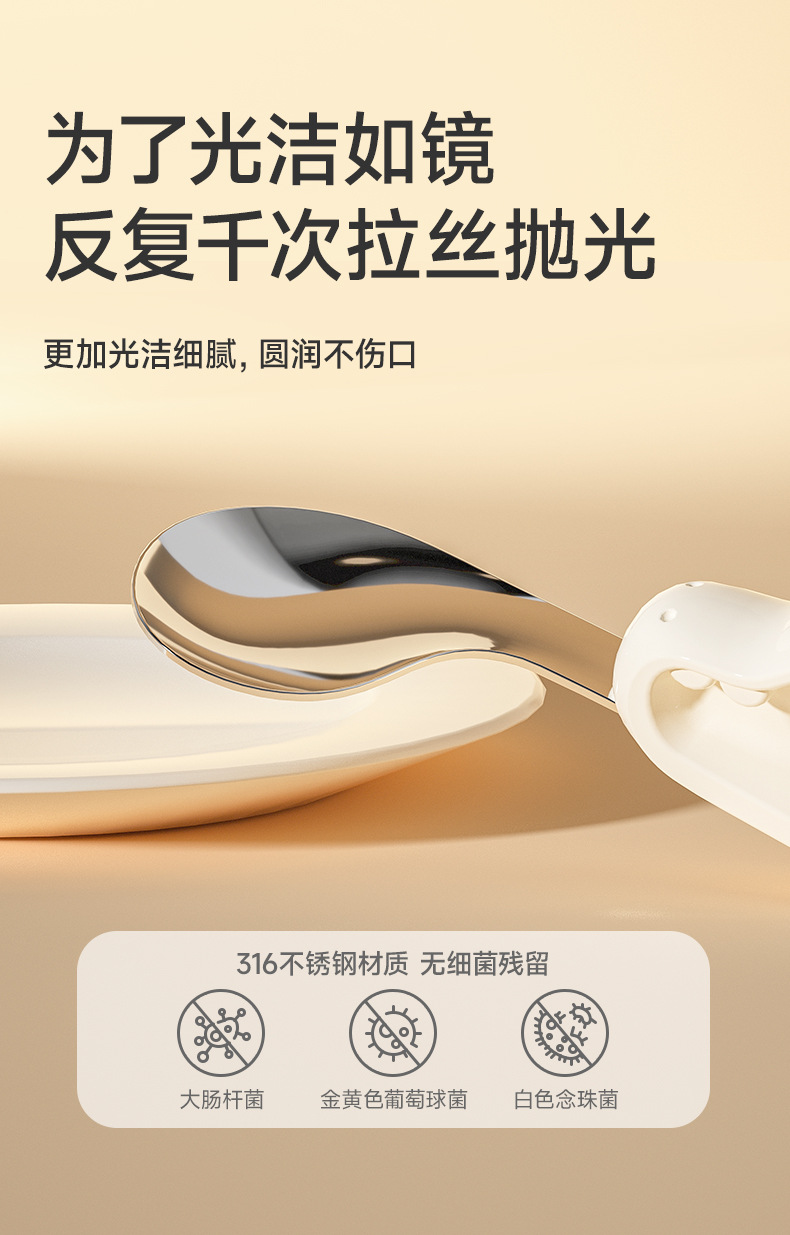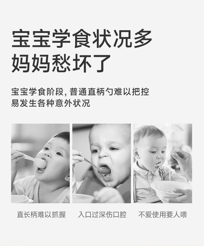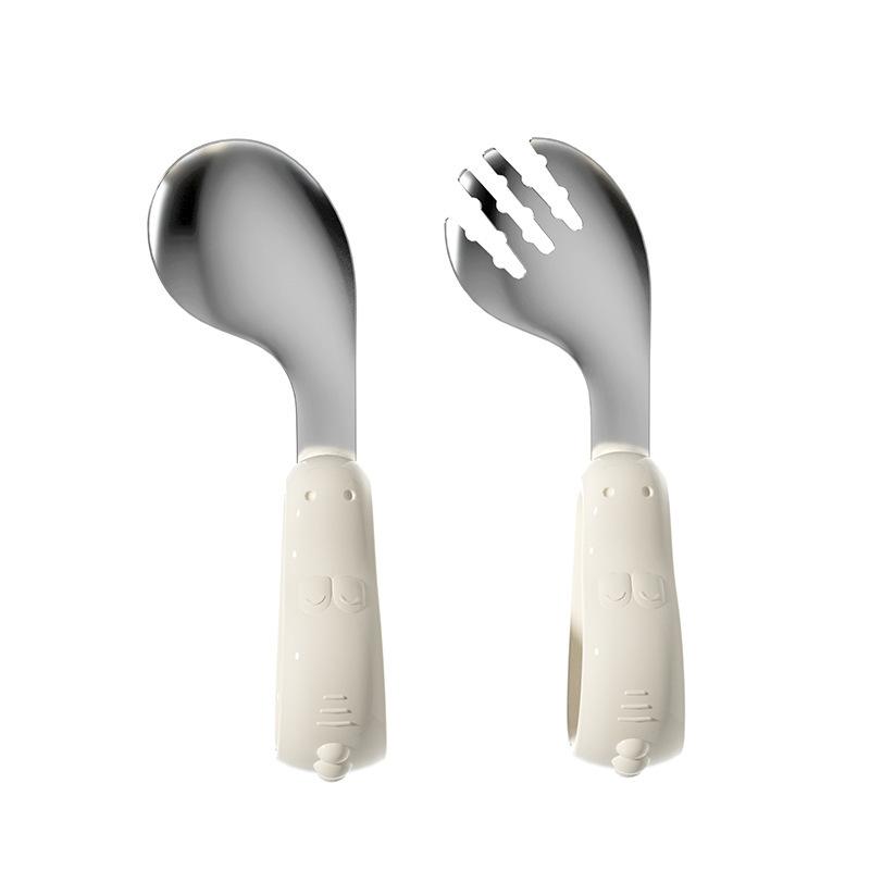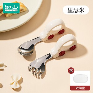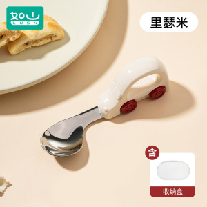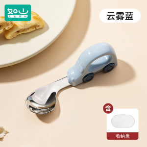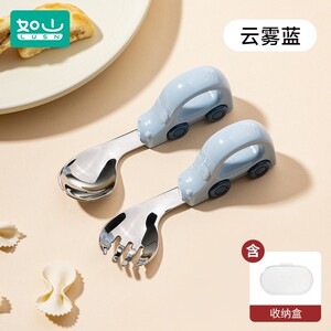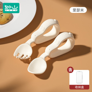 如山宝宝自主进食辅食勺子一岁婴儿学吃饭训练儿童不锈钢短柄叉勺