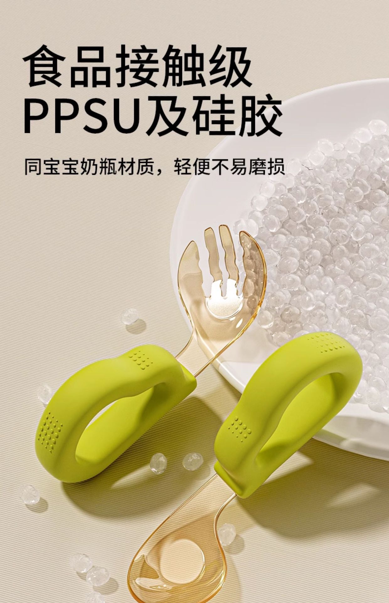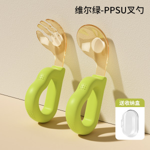 【ppsu叉子+硅胶手柄】维尔绿/赠收纳盒