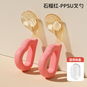 【ppsu叉子+硅胶手柄】石榴红/赠收纳盒