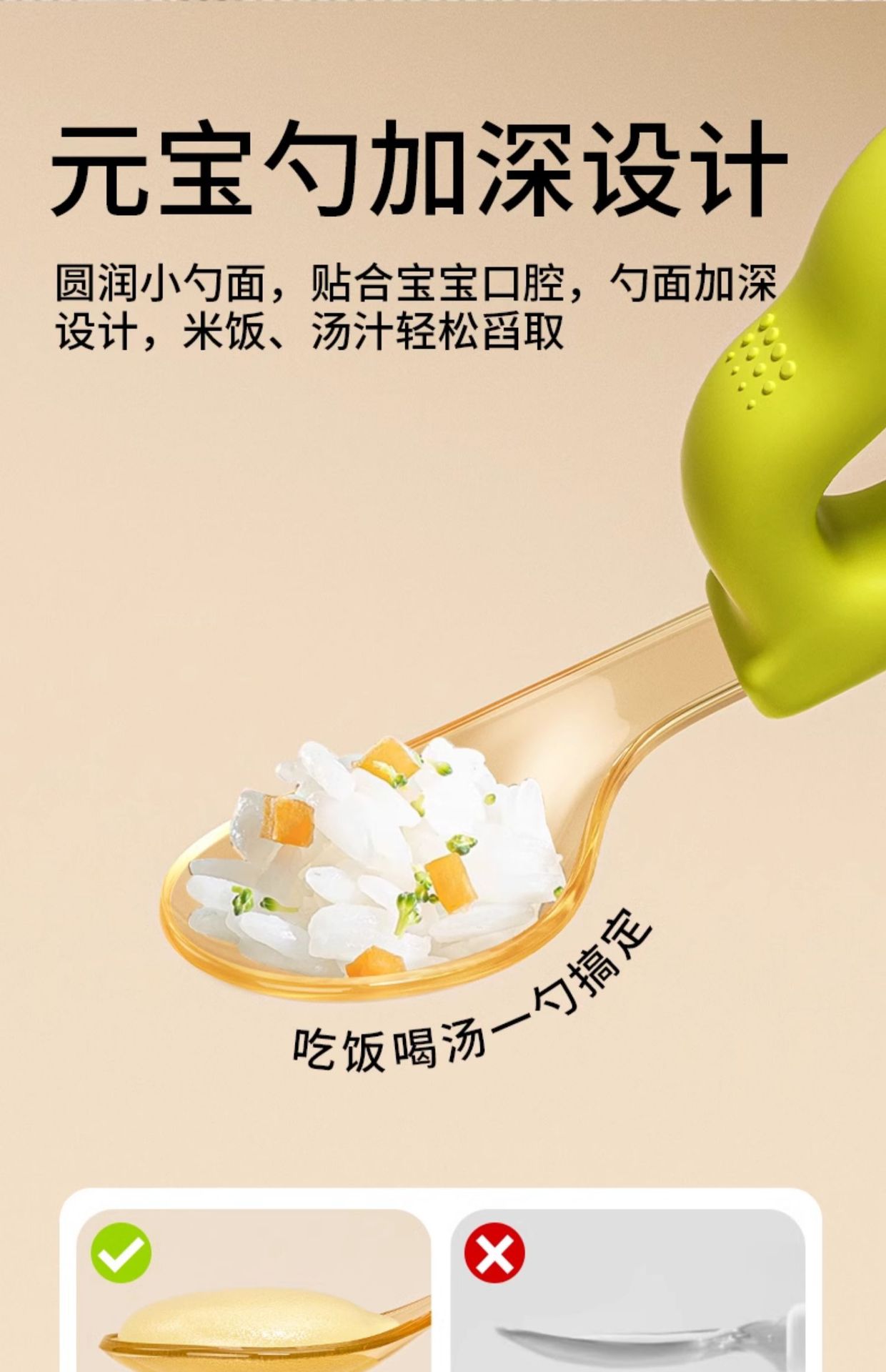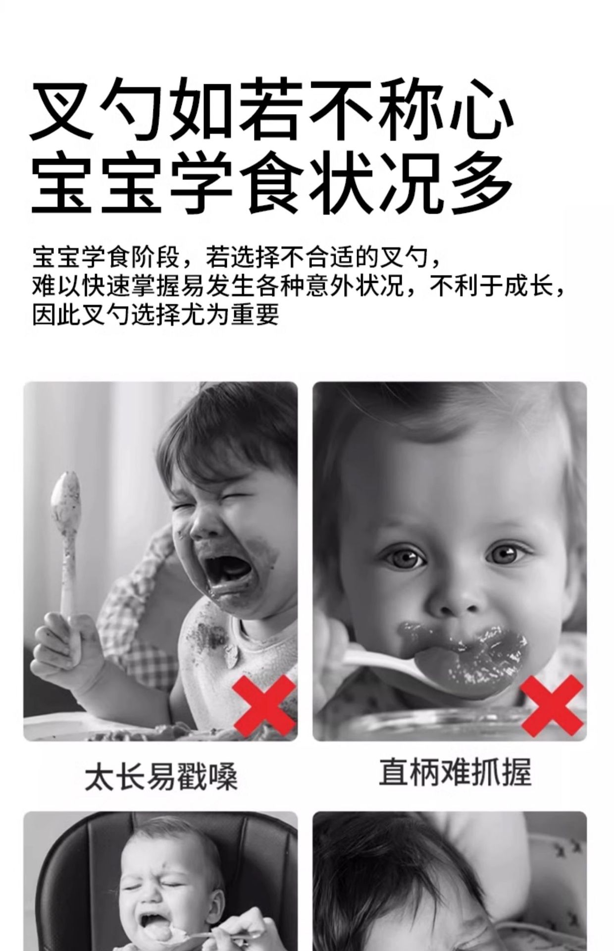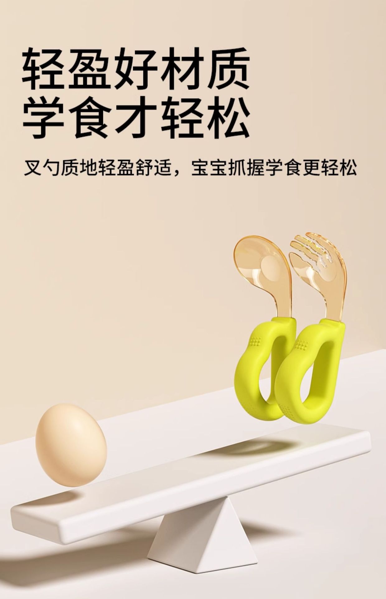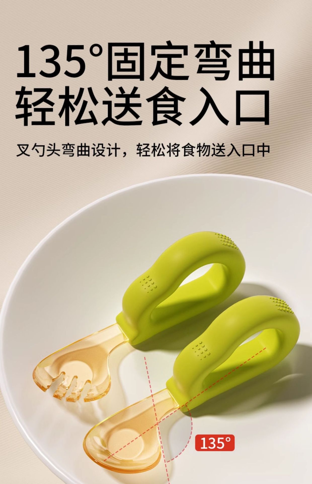 婧麒婴儿学吃饭训练叉勺一岁宝宝自主进食勺子辅食勺儿童餐具套装
