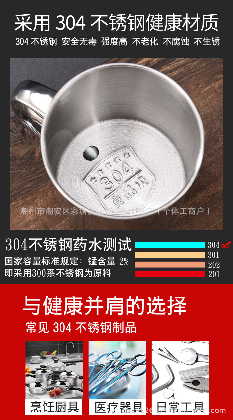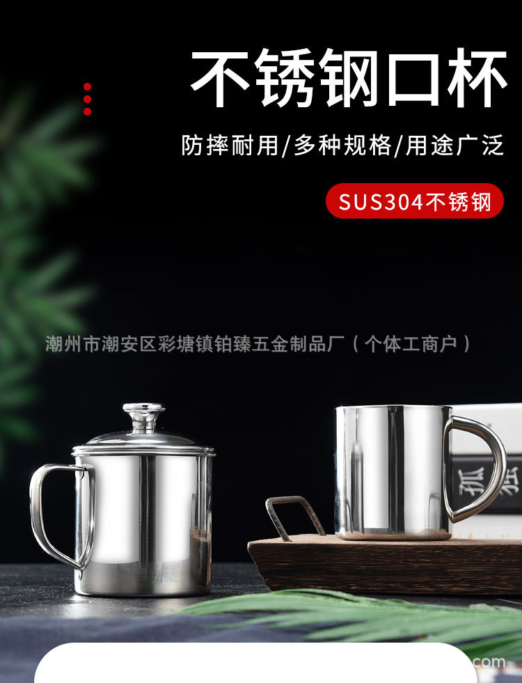 304食品级不锈钢口杯茶杯茶缸子带盖随手杯漱口杯学生儿童喝水杯