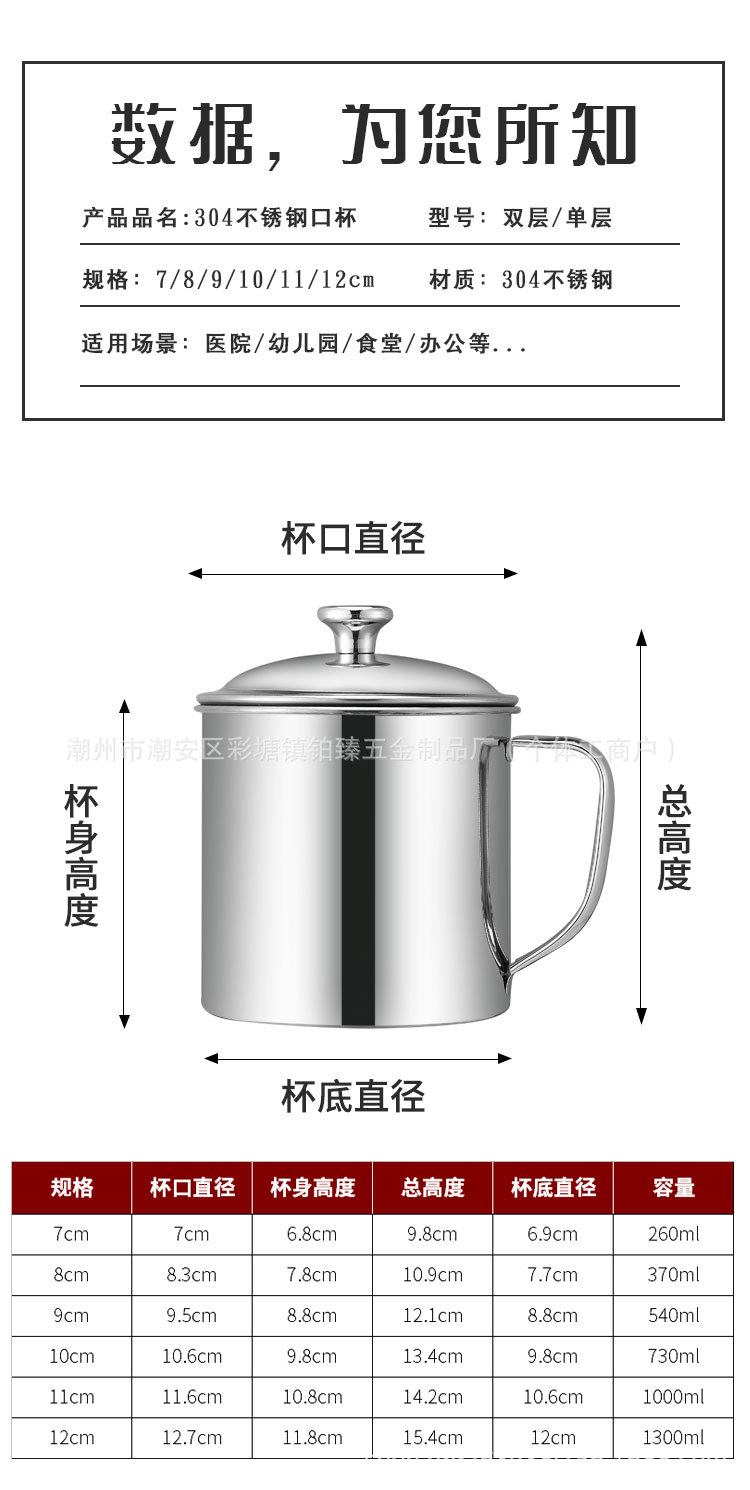 商品名称:304食品级不锈钢口杯茶杯茶缸子带盖随手杯漱口杯学生儿童喝水杯