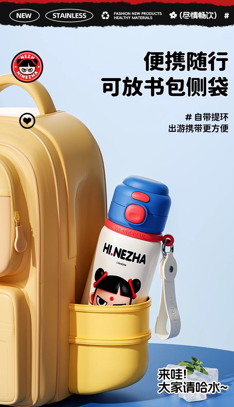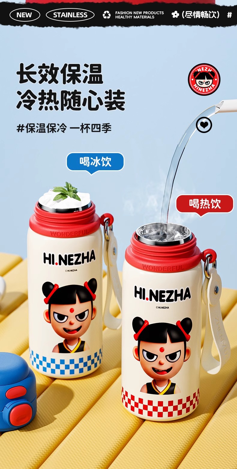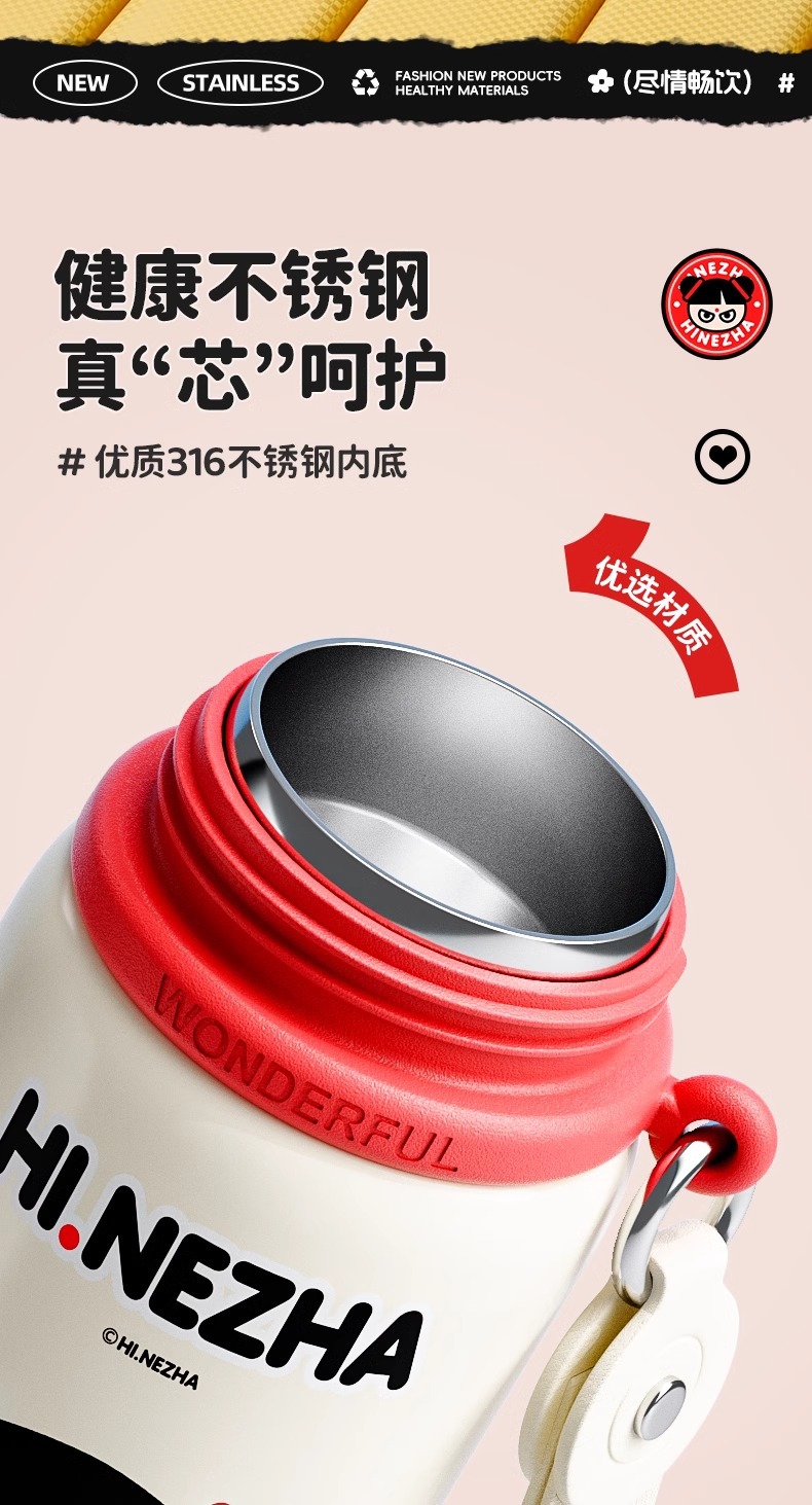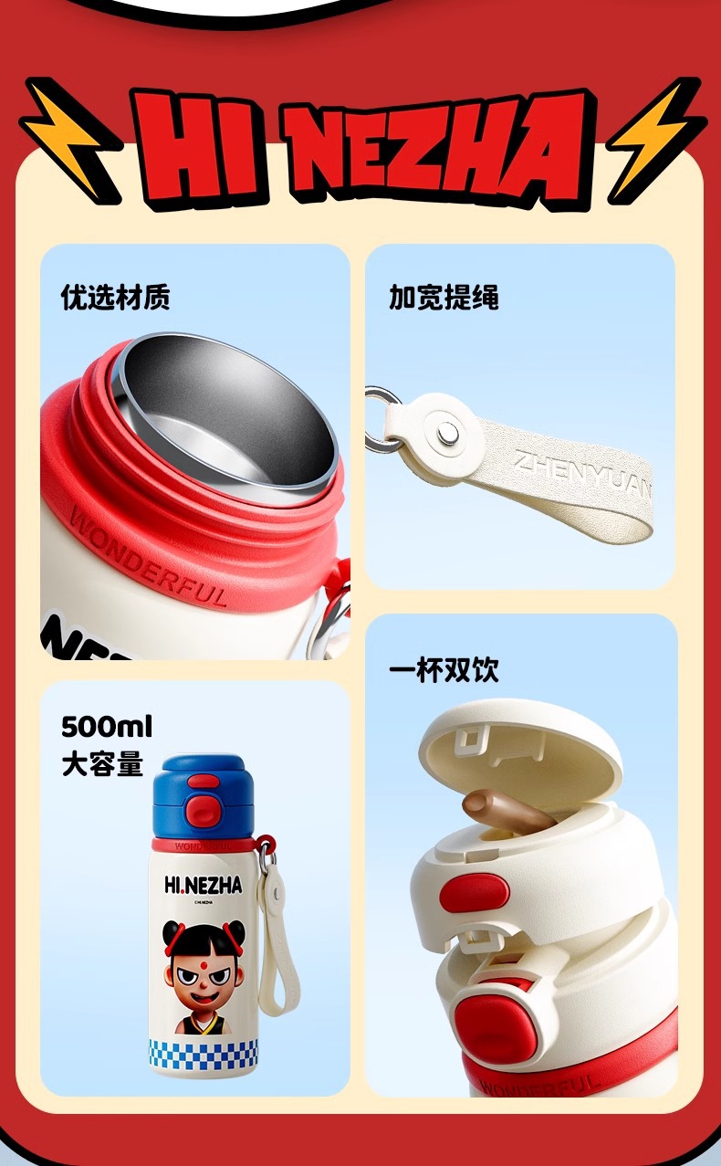 商品名称:哪吒保温杯316不锈钢小学生幼儿园上学专用喝水杯子双饮便携水壶