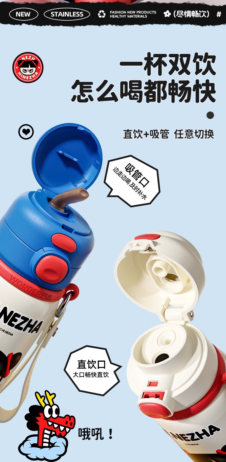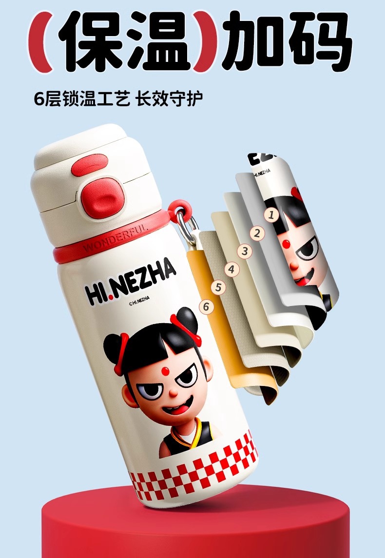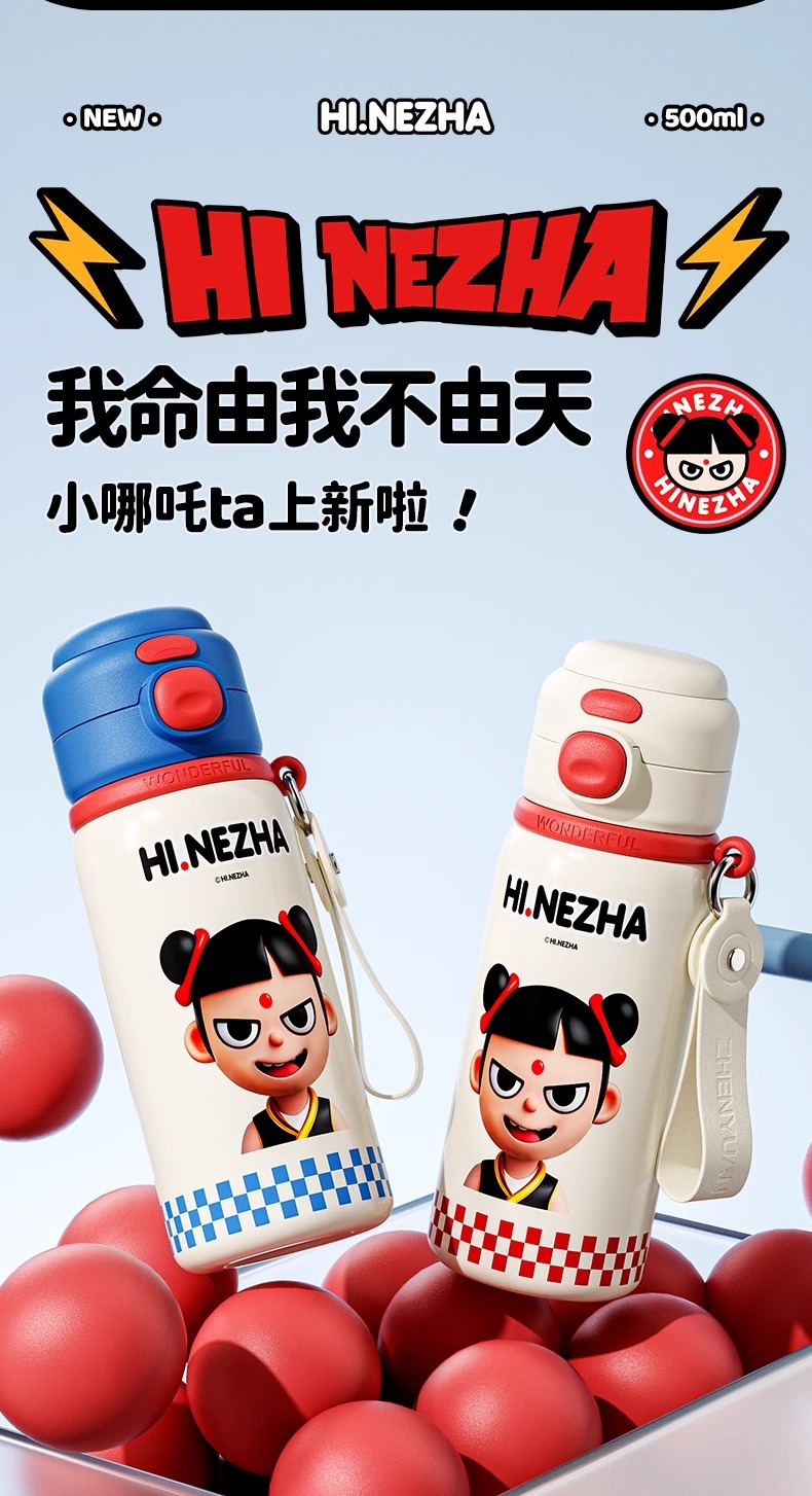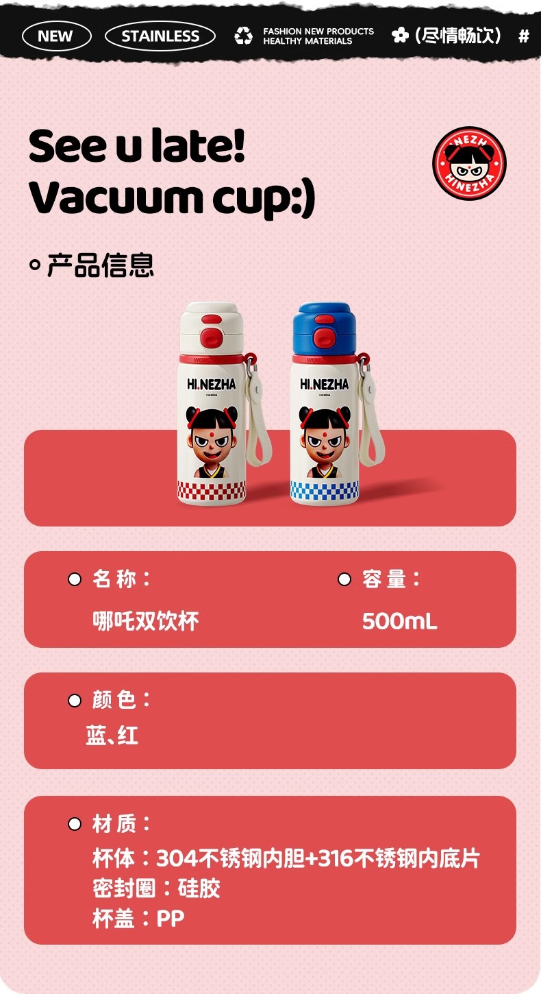 商品名称:哪吒保温杯316不锈钢小学生幼儿园上学专用喝水杯子双饮便携水壶