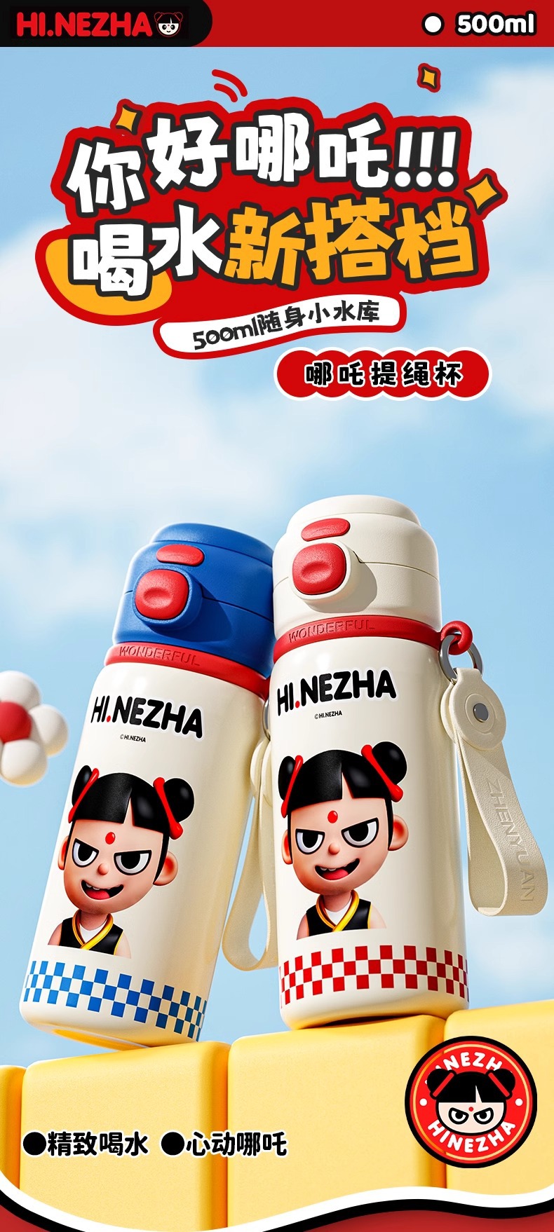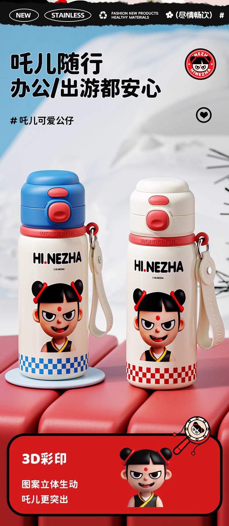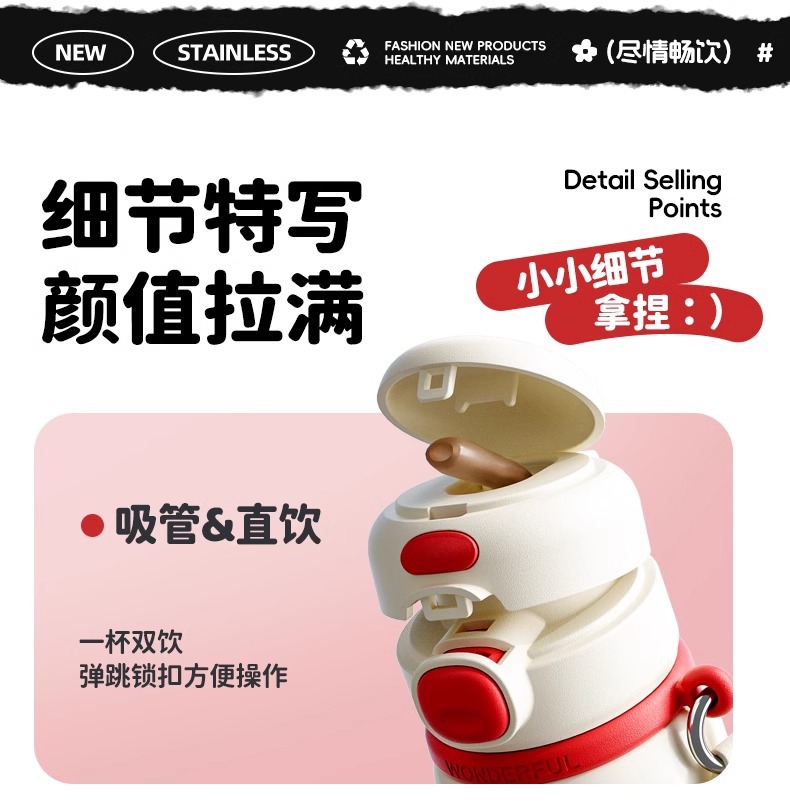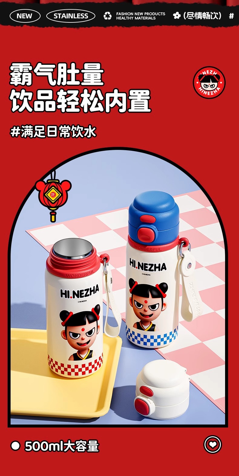 商品名称:哪吒保温杯316不锈钢小学生幼儿园上学专用喝水杯子双饮便携水壶