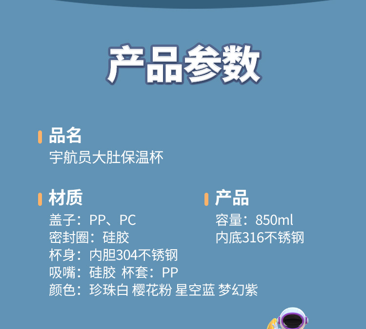 商品名称:宇航员保温杯316大容量儿童水杯带吸管杯小学生专用大肚杯保温壶