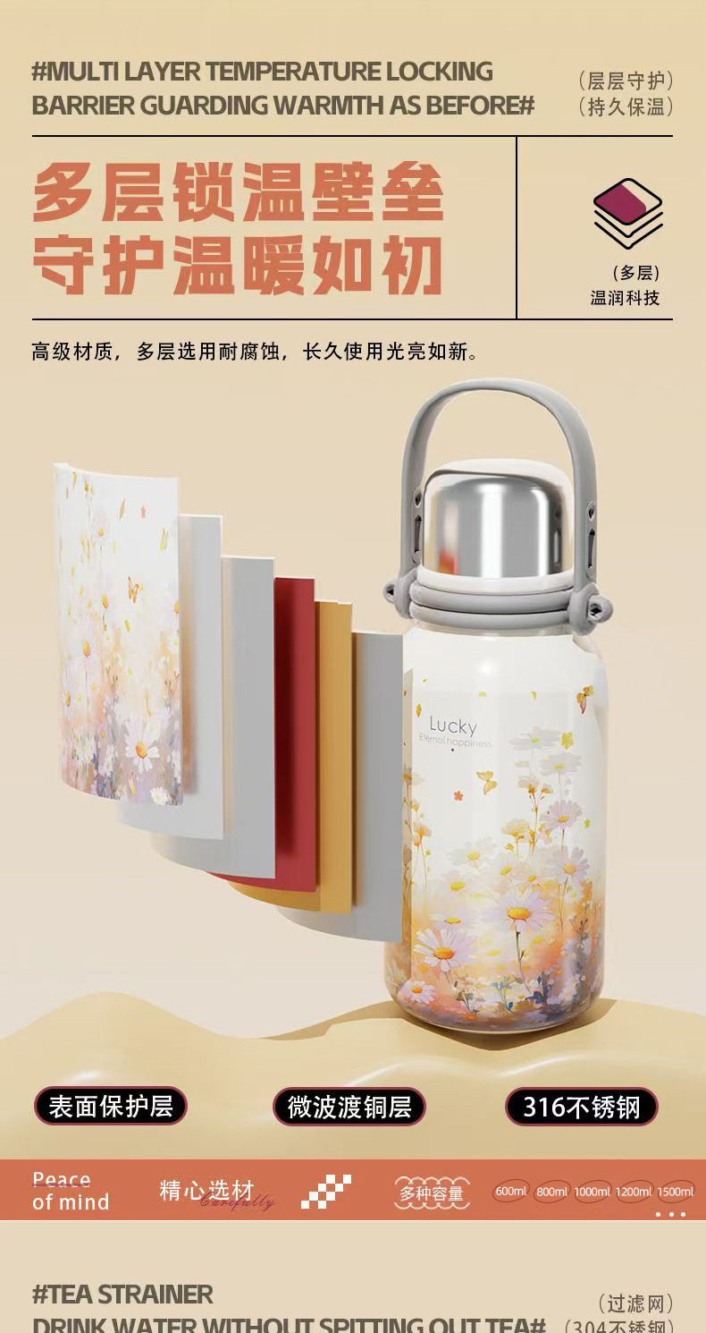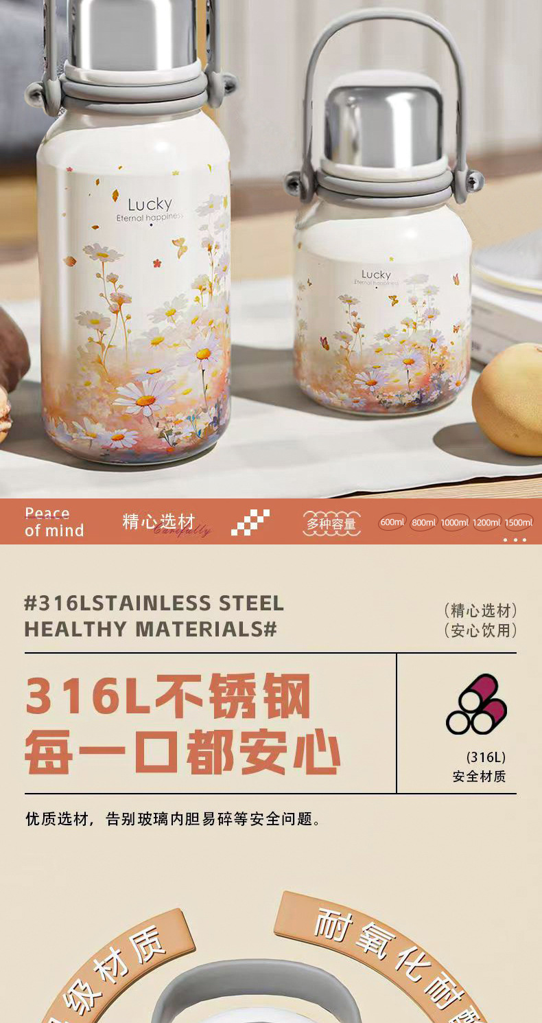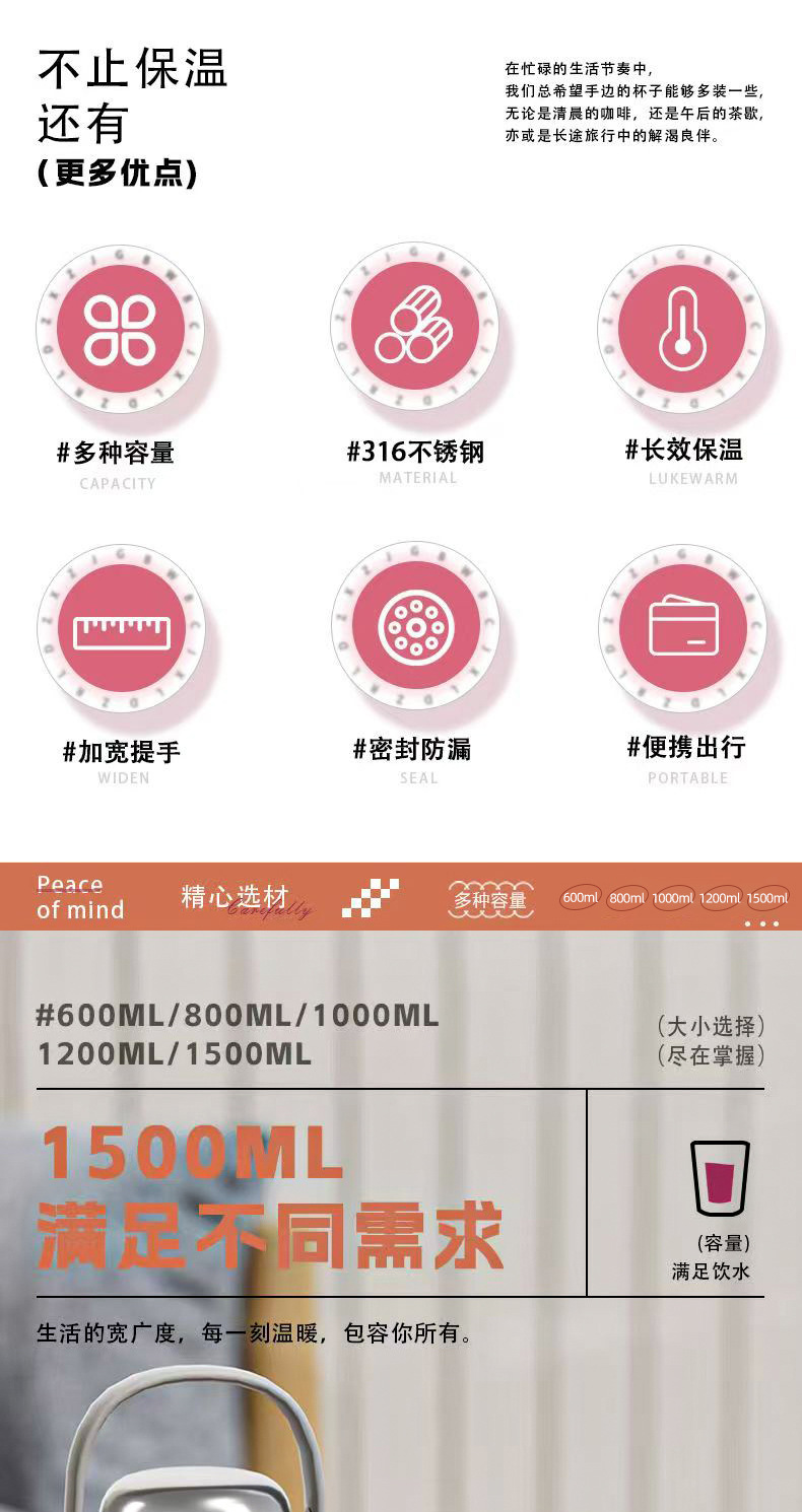 商品名称:保温杯大容量不锈钢316保温杯高颜值水壶户外便携长效家用保温杯