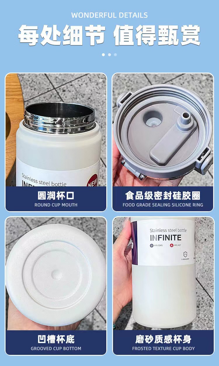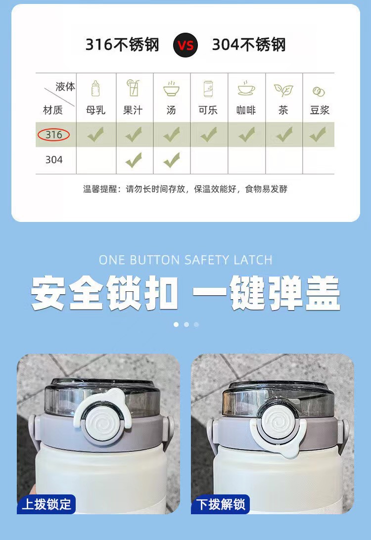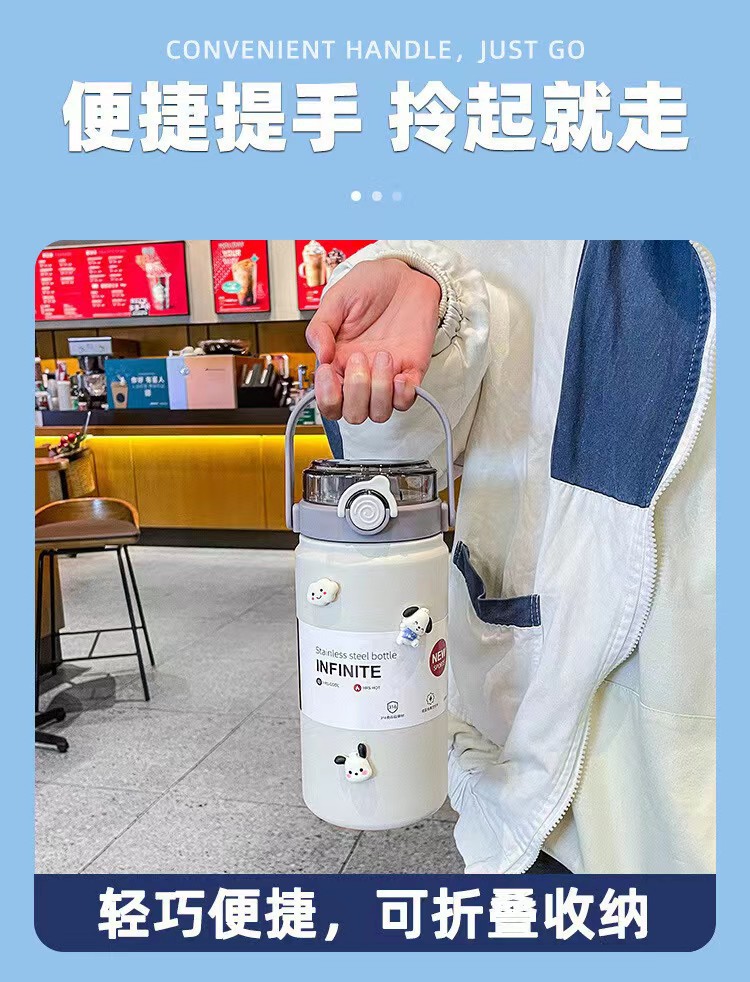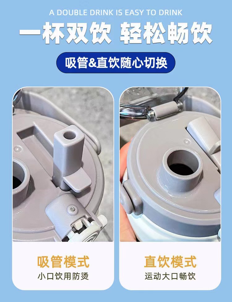 提手保温杯学生上学专用双饮大容量杯子不锈钢高颜值便携随行水壶