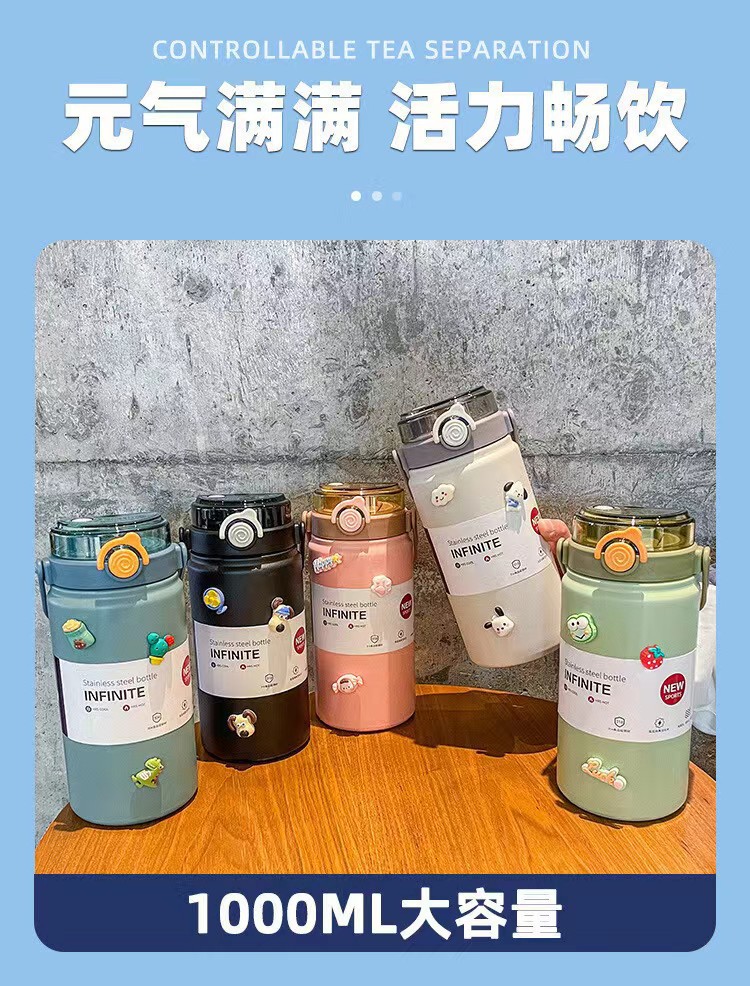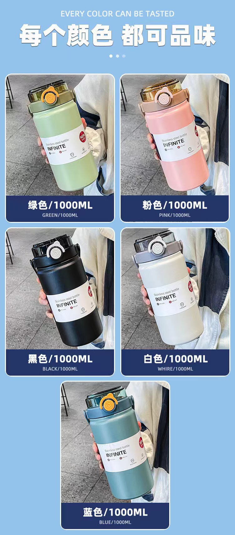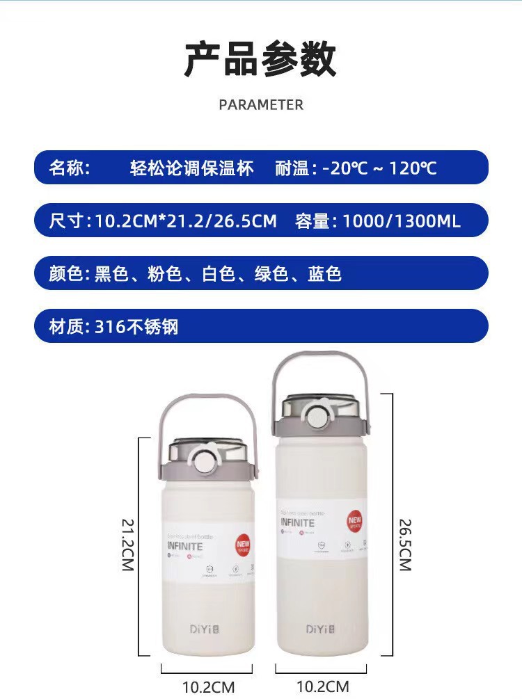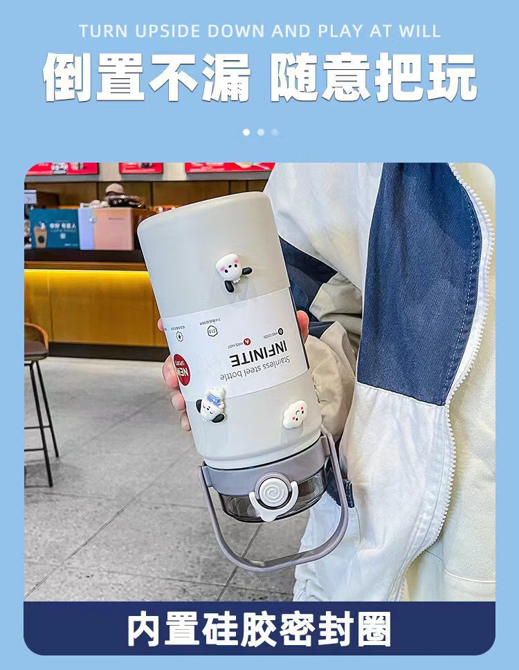 提手保温杯学生上学专用双饮大容量杯子不锈钢高颜值便携随行水壶