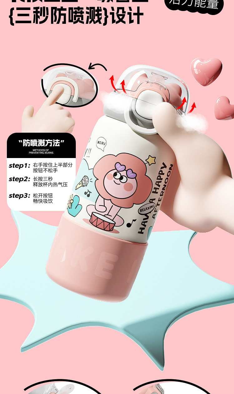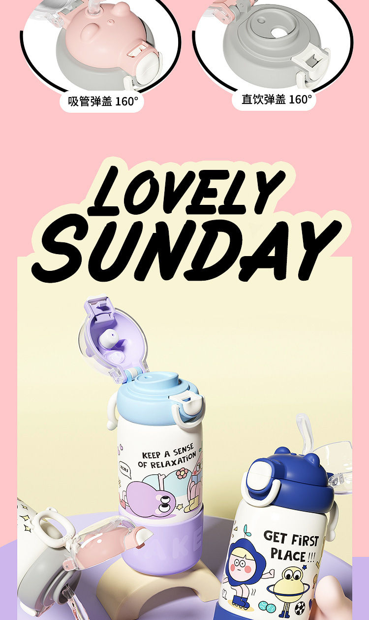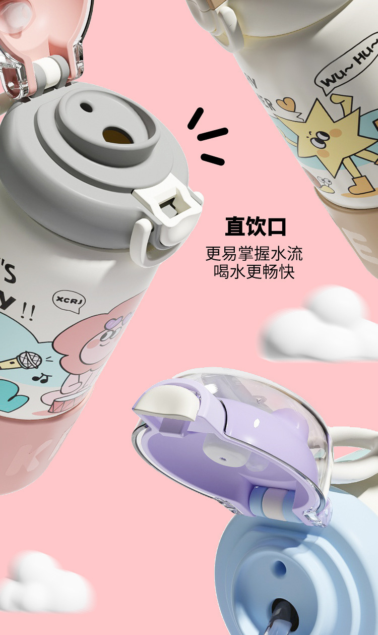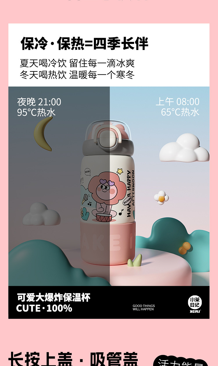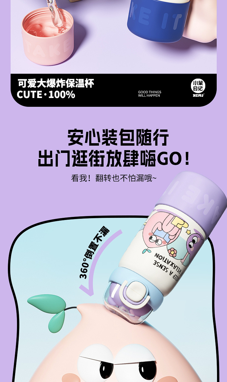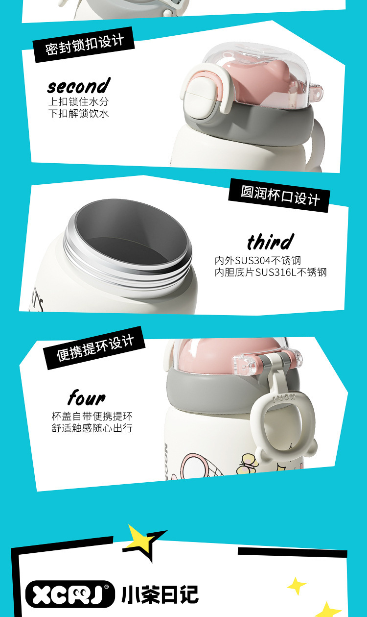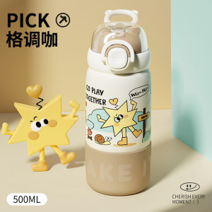 小茶日记保温杯儿童幼儿园上学专用水杯大容量带弹跳吸管三饮水壶