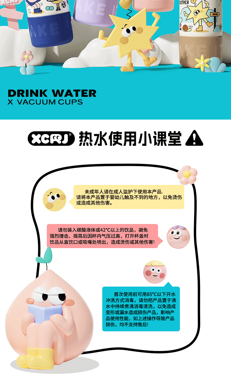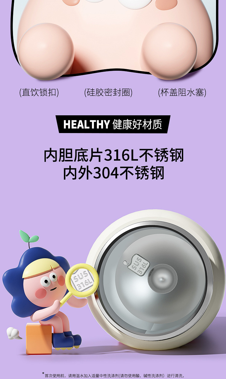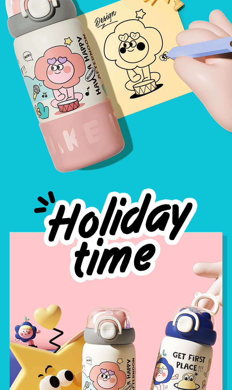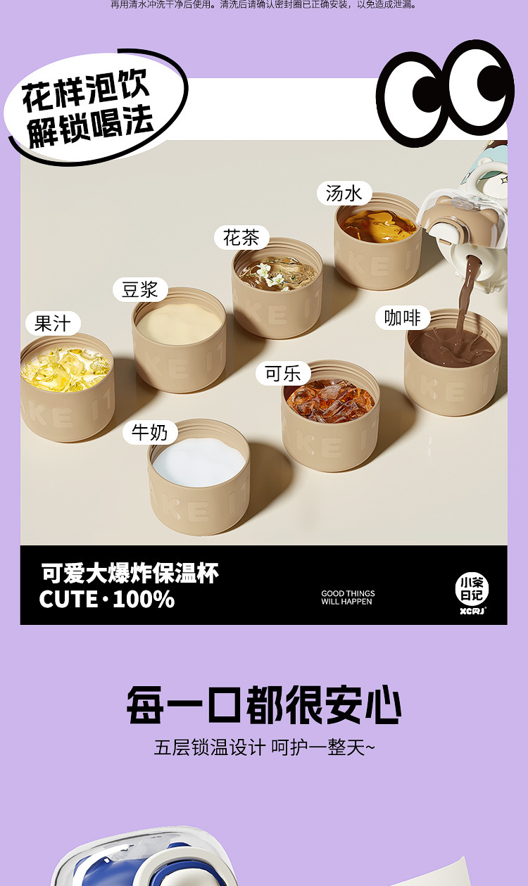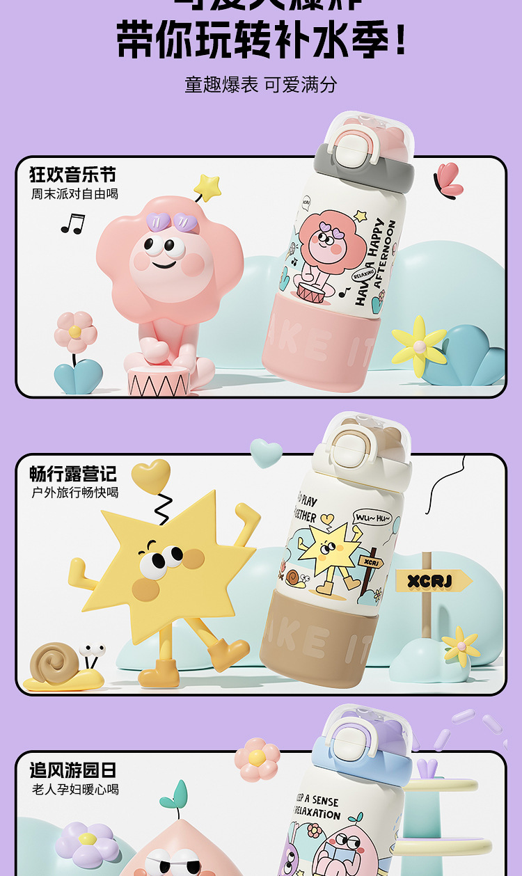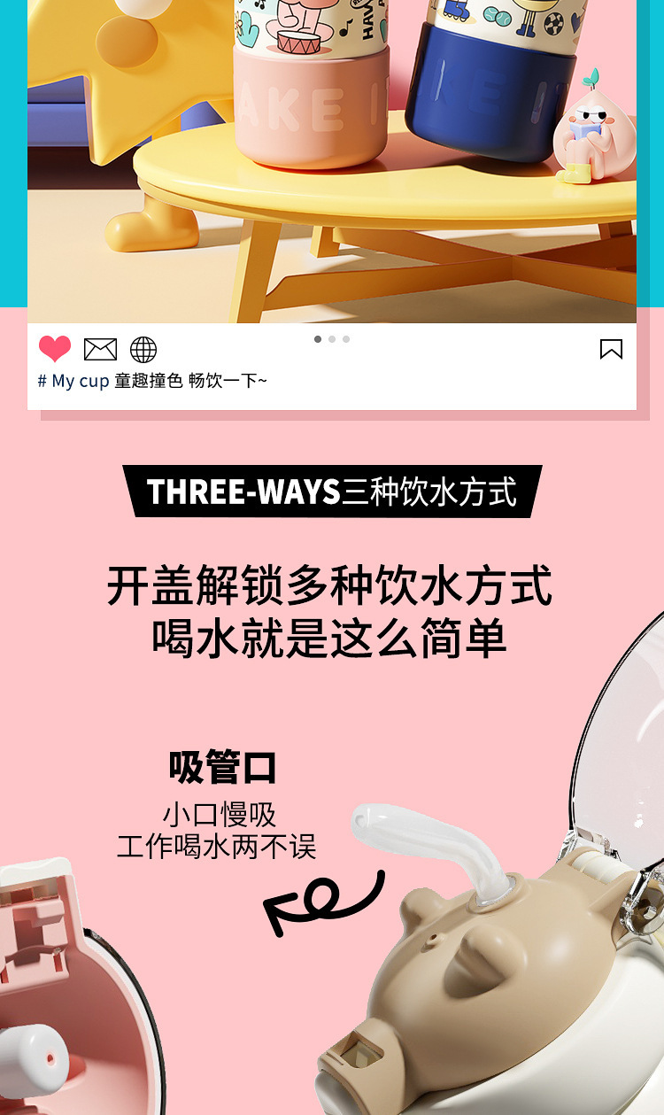 小茶日记保温杯儿童幼儿园上学专用水杯大容量带弹跳吸管三饮水壶