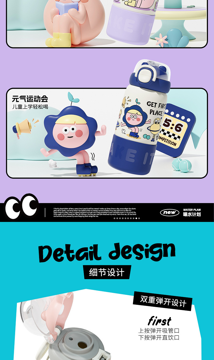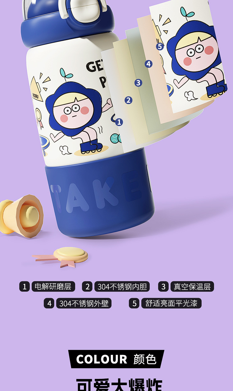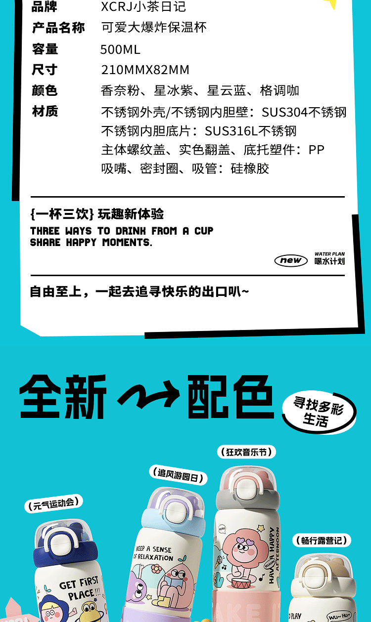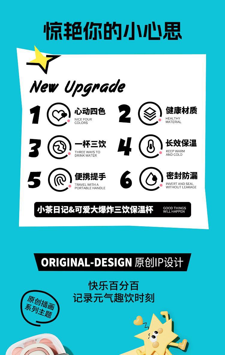 商品名称:小茶日记保温杯儿童幼儿园上学专用水杯大容量带弹跳吸管三饮水壶
