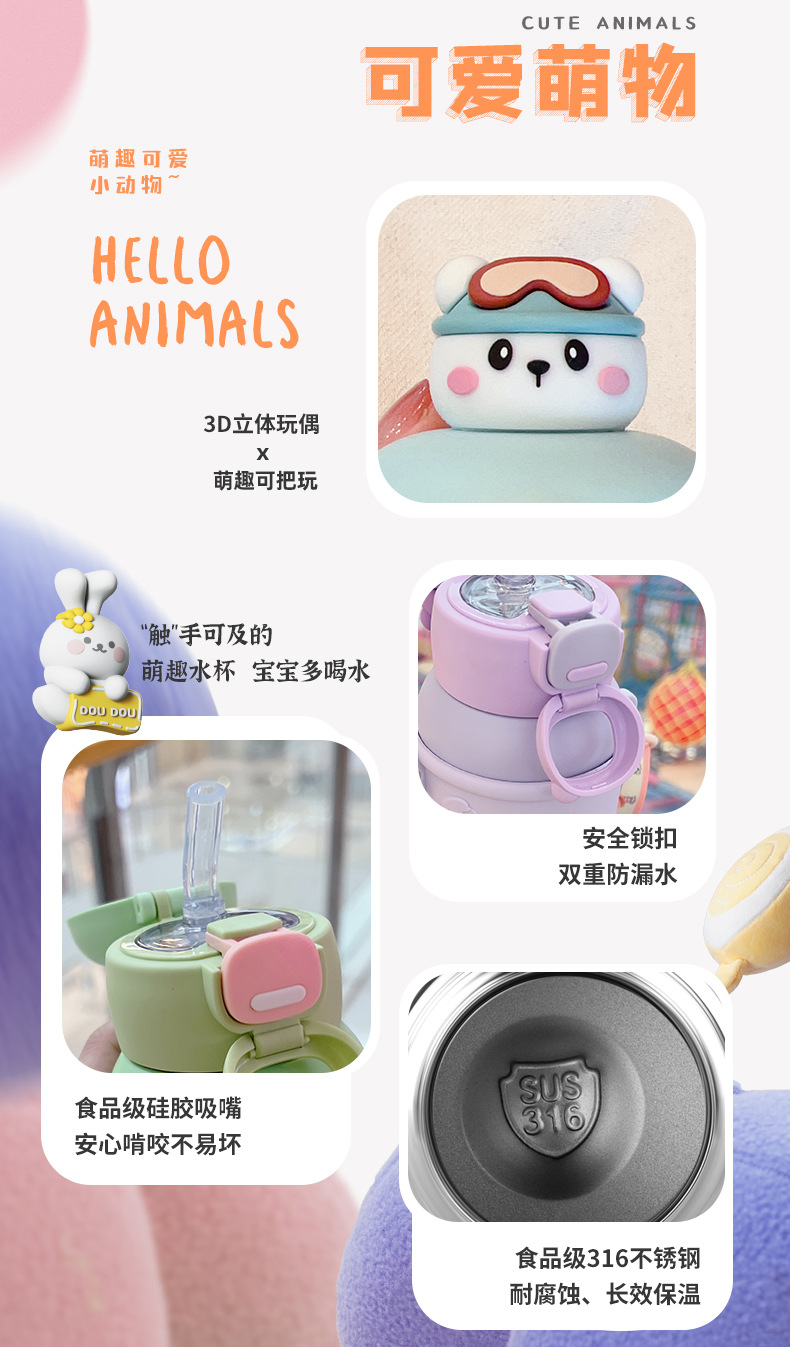 商品名称:儿童保温杯吸管水杯子食品级316小学生上学专用女生男孩宝宝水壶