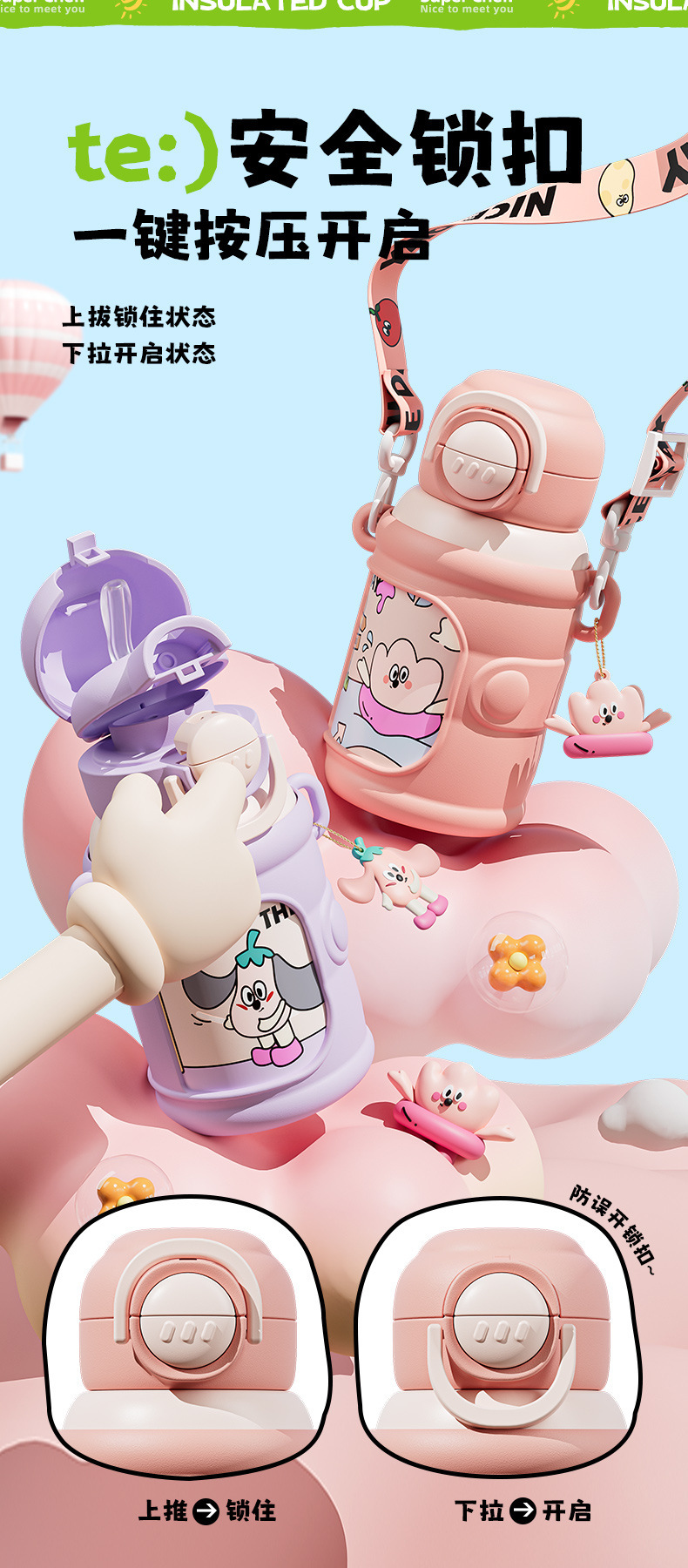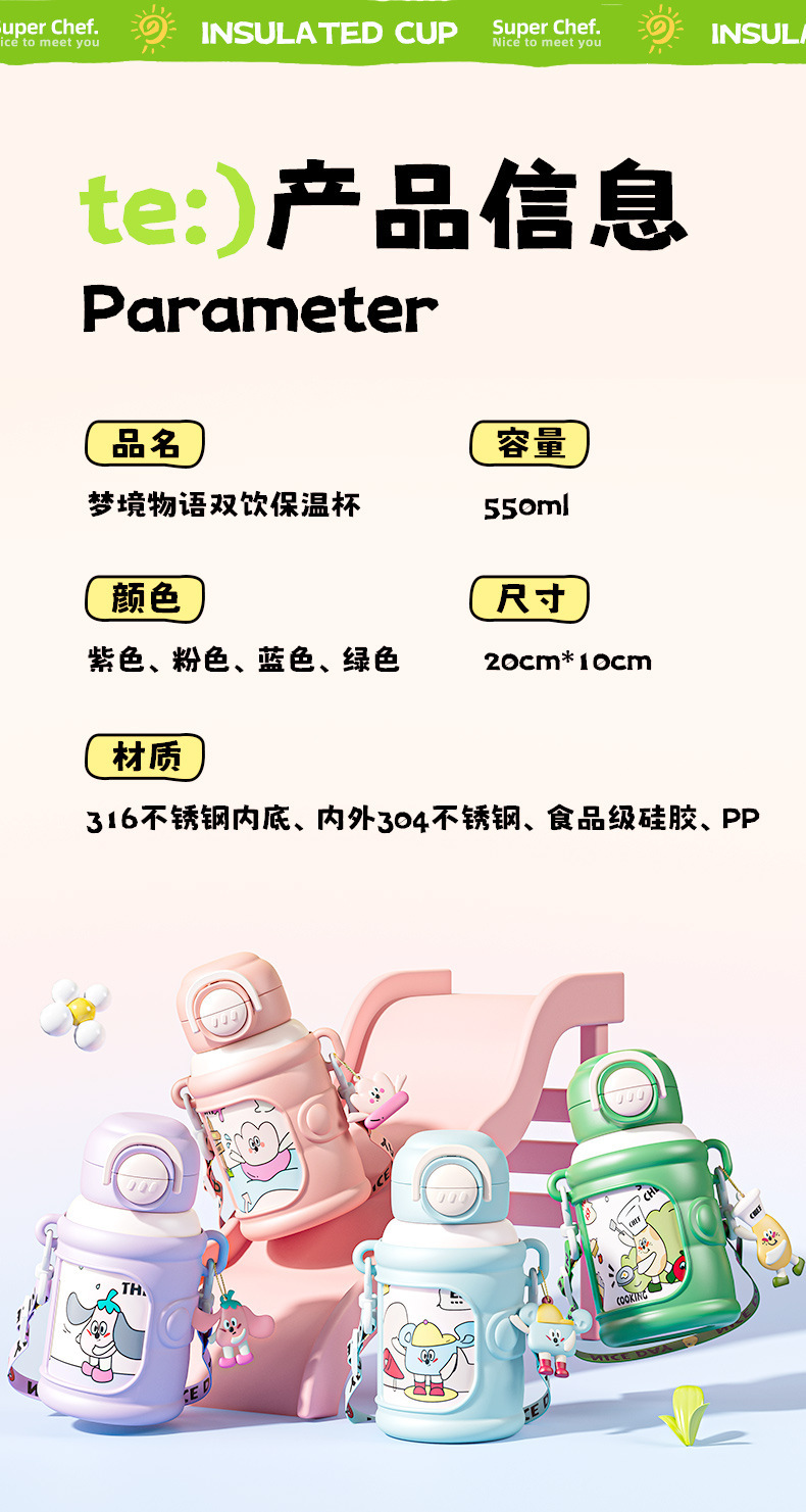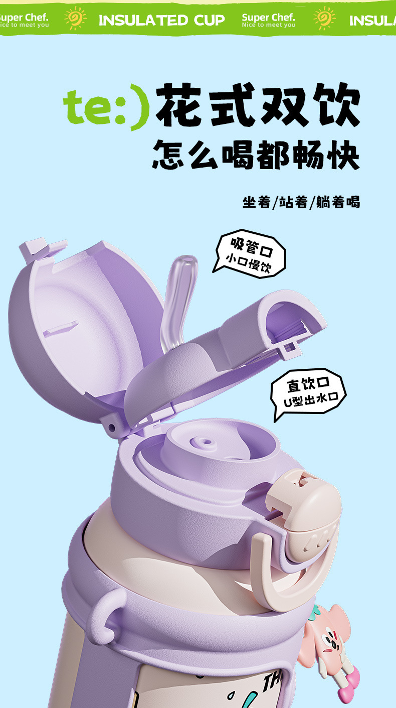 商品名称:新款儿童壶316不锈钢双饮保温杯学生可爱防摔水杯卡通礼品水杯子