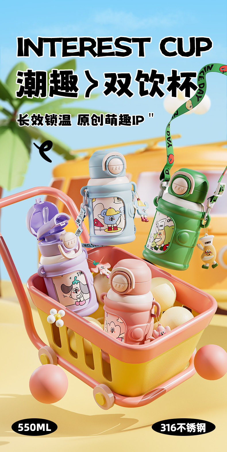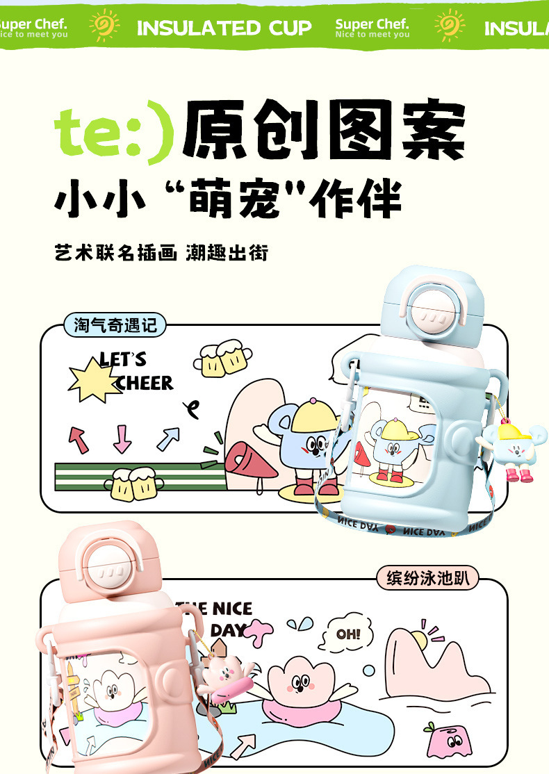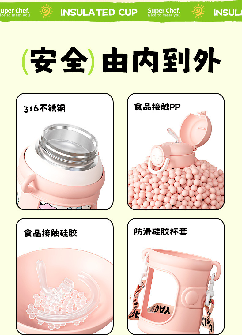 商品名称:新款儿童壶316不锈钢双饮保温杯学生可爱防摔水杯卡通礼品水杯子